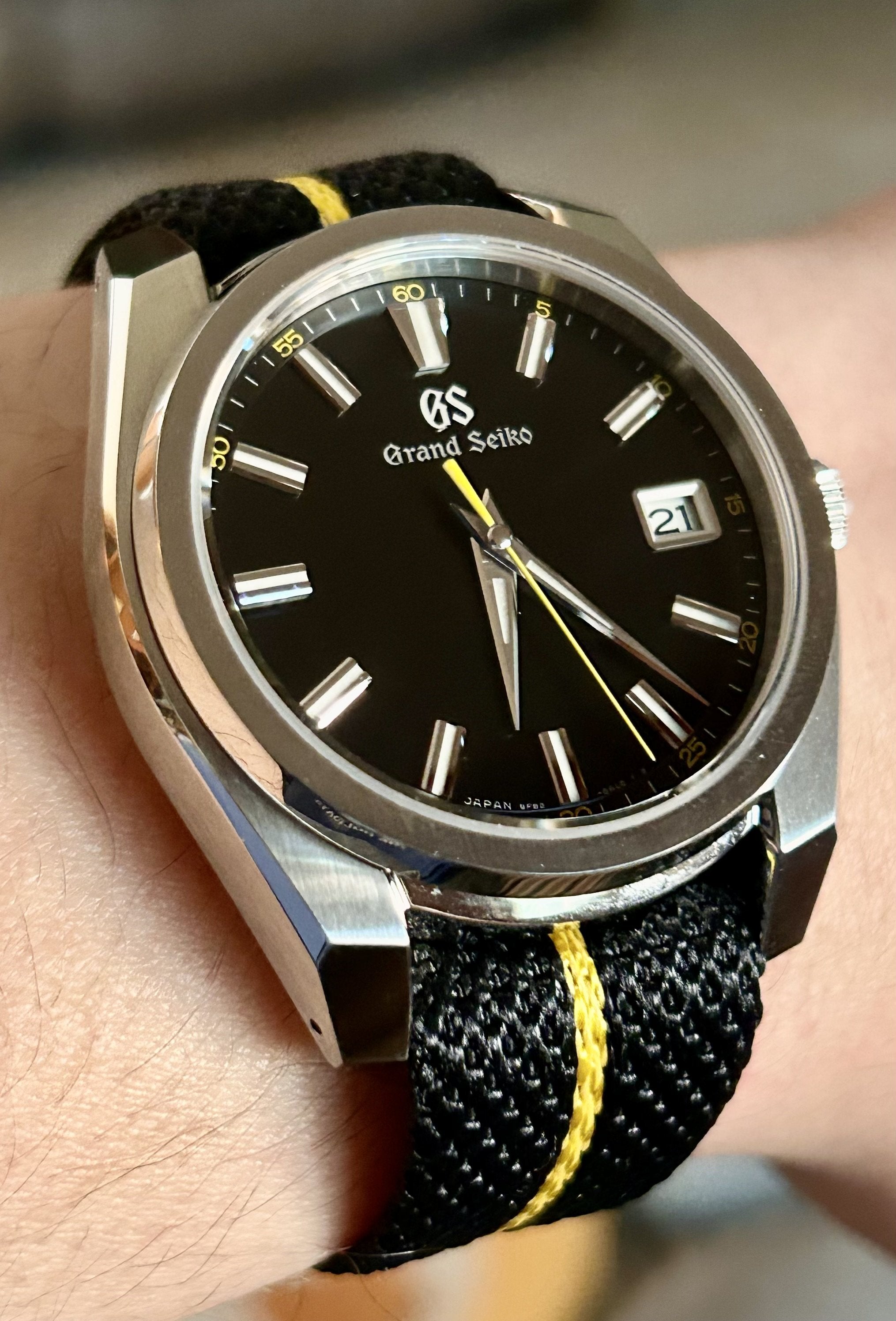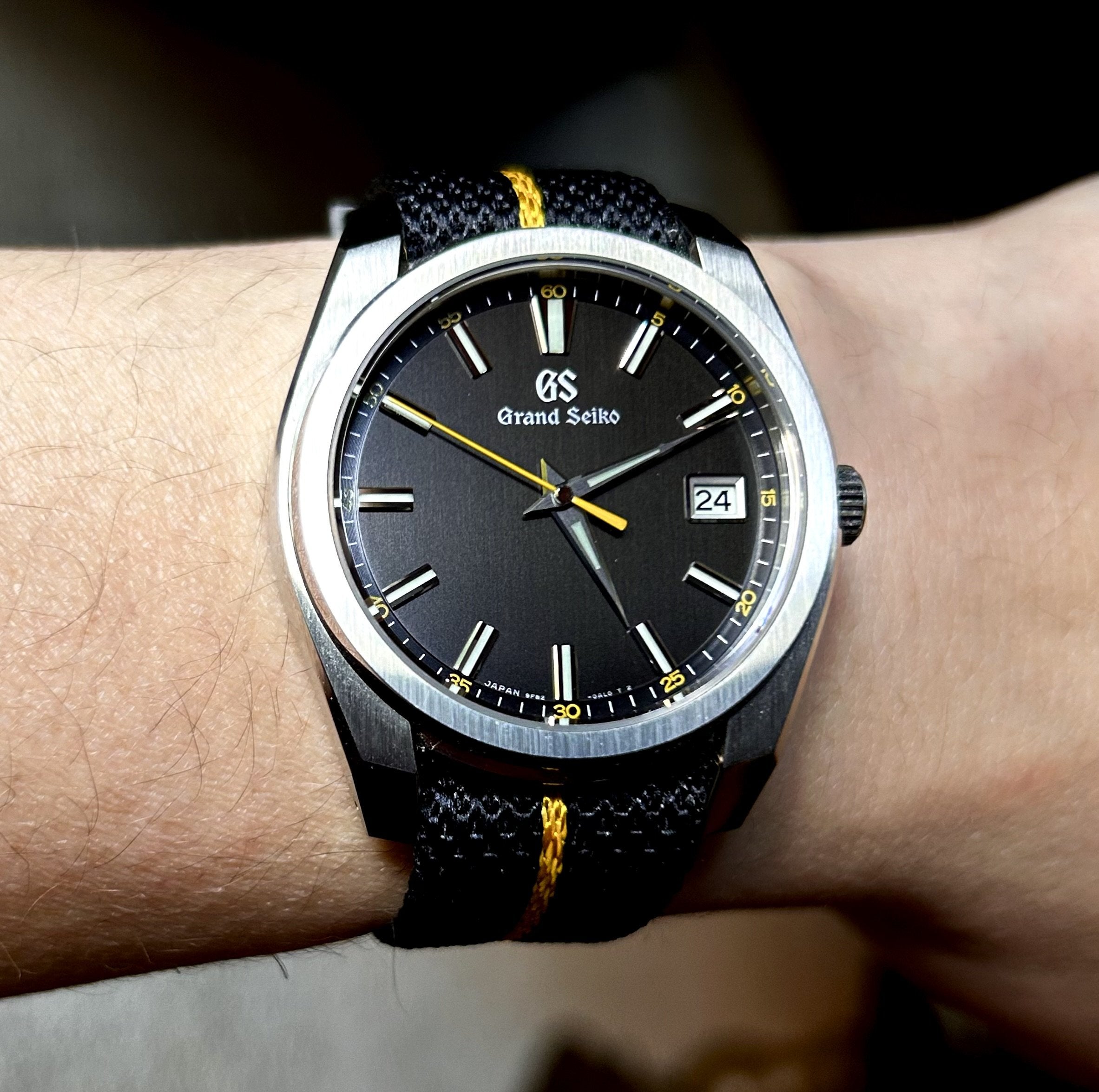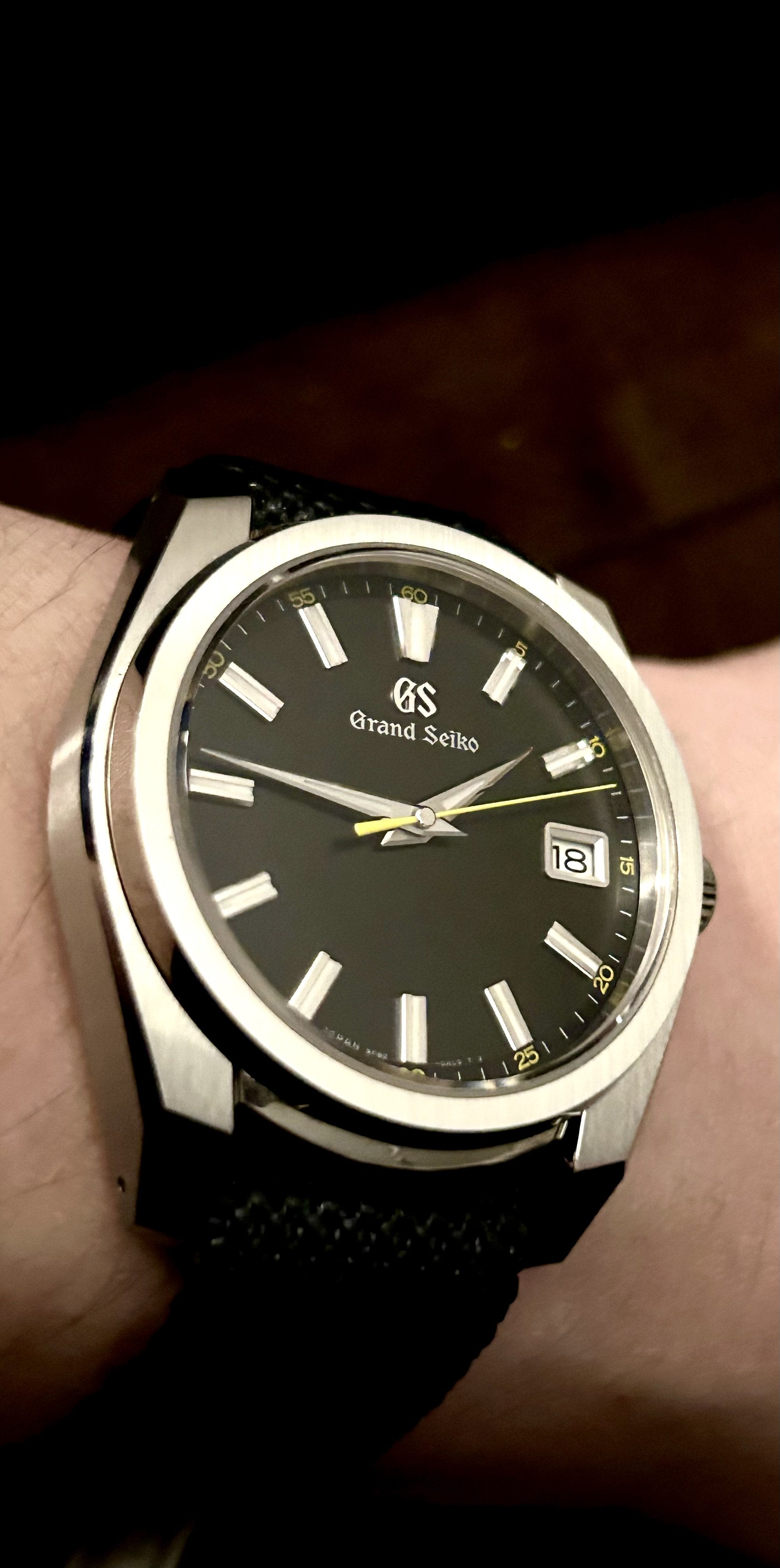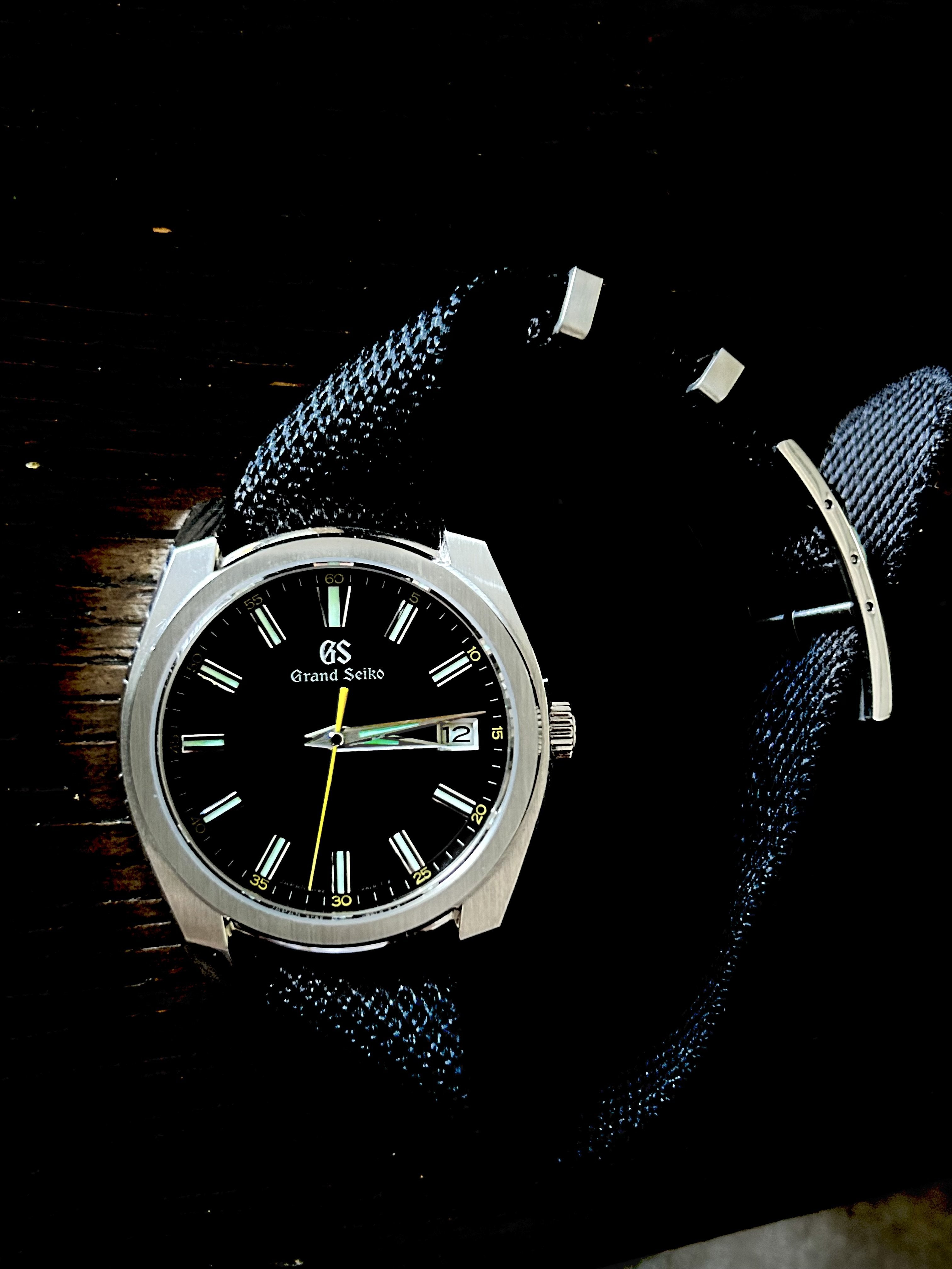 Listing another one that I am reluctant to sell. I am committed to trying to downsize. Watch is in fantastic shape! I bought this in May, 2024 and have worn it sparingly. I have the original GS strap and will include the pictured Chevron single-pass strap as well, as I believe it complements the watch perfectly.