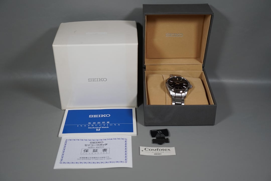 Timestamp: https://imgur.com/a/2BDzcT8 For sale is a Seiko Brightz SDGM003 6R15 Black Dial Grand Cocktail Automatic. Approximate measurements: Case diameter: 40.5mm (without crown) Lug to lug: 48.6mm Thickness: 11.5mm This watch is in pre-owned condition and comes as pictured on the original bracelet. This piece comes with the box, manual, hangtag and stamped warranty card. Warranty card is dated 2016-6. The bracelet is unsized with full links. Very rare find in this condition with minimal signs of wear. Asking $755 USD including tracked shipping to US. UPS Expedited/Express, Canadian, and global shipping available at an additional cost. Payment via Wise, crypto, wire, e-Transfer (for Canadians), or PayPal Invoice (+3.9%). No trades and please comment before messaging.