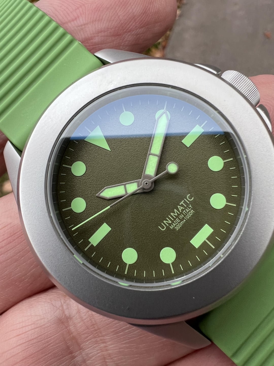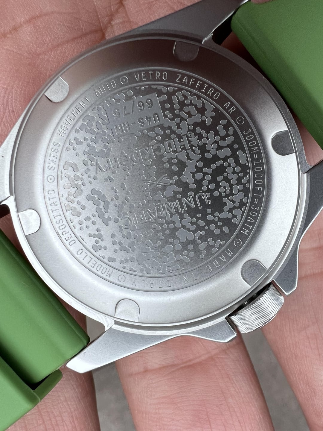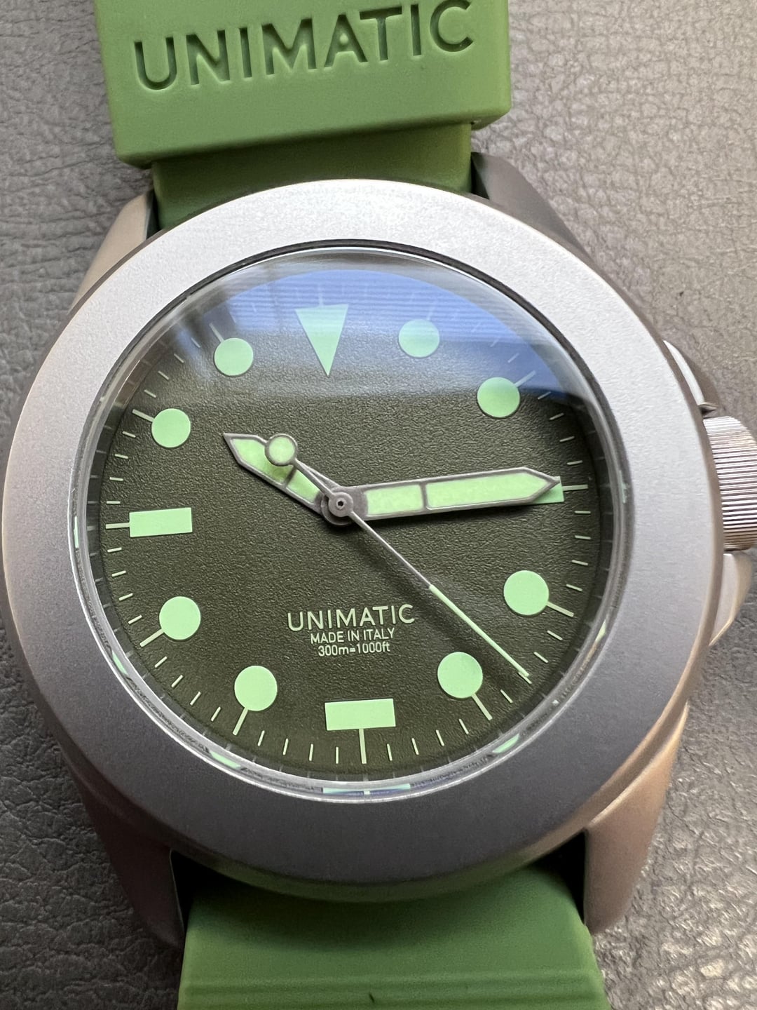 Hey Watchexchange! **Reposting after buyer flaked.** Up for grabs is my awesome collaboration between Unimatic and outdoor lifestyle brand Huckberry. This U4S is a nature inspired “field” watch with a diver rating. It’s one of 75 made in this moss green colorway that takes cues from the Redwood forest. The sandblasted steel case and SW200-1 movement make it tough as nails. **Condition:** Excellent condition. I couldn’t spot a mark on it. Keeping great time. **Scope of delivery:** Comes with warranty card, branded NATO and rubber straps, and Unimatic branded Pelican style 2 watch case. **Specs:** Reference number: U4S-HM Case size: 40mm Lug-to-lug: 49mm Case thickness: 12.4mm Water resistance: 300m **Price:** $699 shipped CONUS **Methods of payment:** Zelle is preferred. **Trades:** Not at this time. **References:** Hundreds of successful transactions in watch trading. See my eBay account under the same name. Many references in Facebook groups, watch forums, and on WUS. **Timestamp:** https://imgur.com/a/1pKR5JX **Photo album:** https://imgur.com/a/LA6HuON