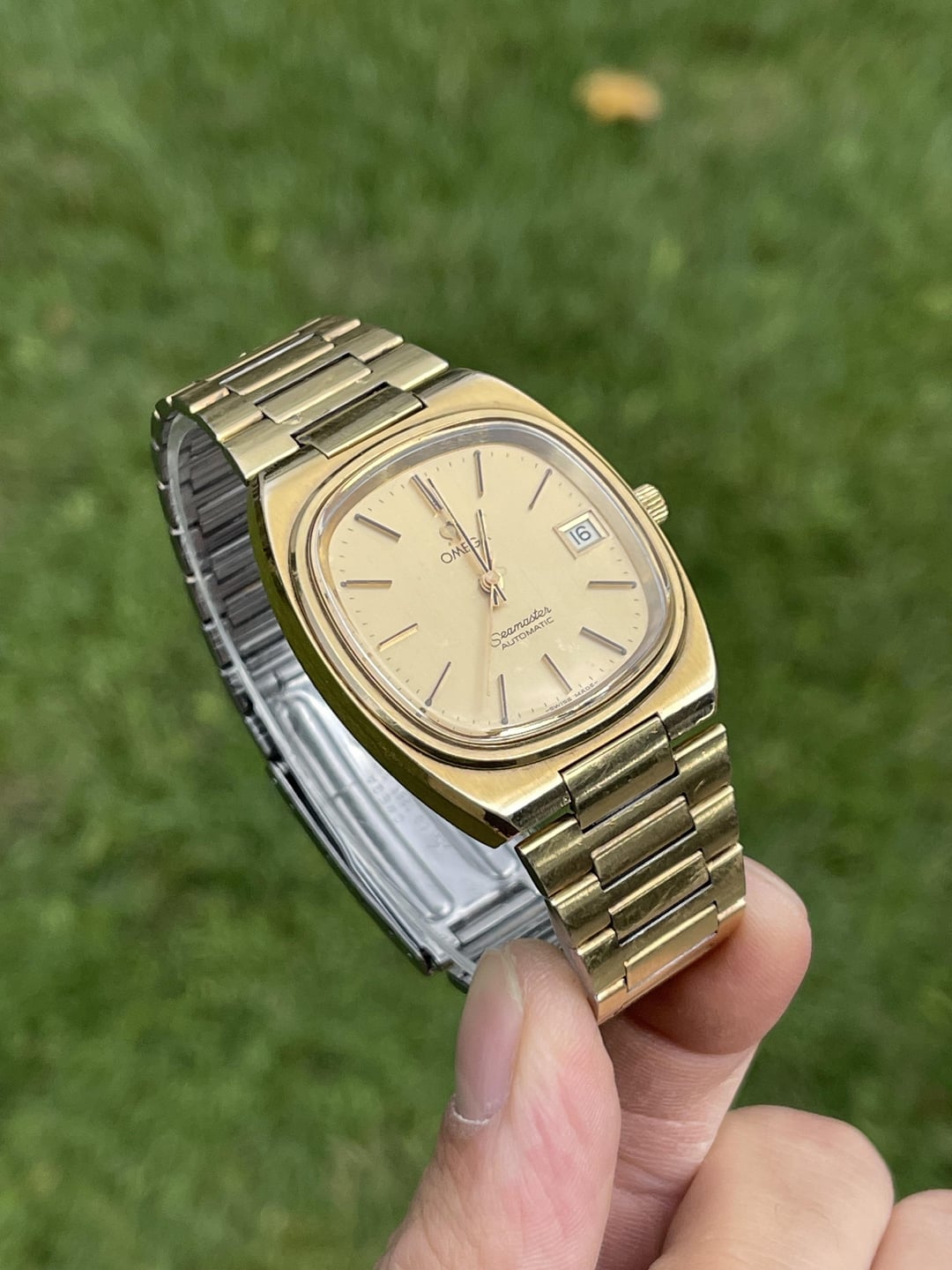 Hi all! Here is for sale a nice Omega Seamaster Automatic 166.0207. The watch is made of gold plated stainless steel. For sale is the watch only. The case is in good condition, made from stainless steel and gold plated with 20 microns. The case has original sharp brushed and polished edges, it has signs of wear but no big scratches or dings. Movement is automatic 23 Jewels Omega 1010, keeps time around 0 sec/day. Crown is gold plated, signed with Omega logo. Caseback is stainless steel and has Seamaster logo. Reference number is engraved on inner side of caseback. Crystal is acrylic signed with Omega logo in center, has sharp edges and no blemishes. TV dial is gold colored, has vertical brushed texture. This one has applied gold toned Omega logo, Seamaster Automatic and Swiss Made at 6 o’clock. Date window is at 3 o’clock. Applied hour markers are gold toned as the handset. Bracelet is authentic Omega 1286.249.1 goldplated as well, has minimal stretch and can fit a 19cm wrist. The watch is in good preserved condition and looks brilliant due to gorgeous TV dial. Detailed pics/videos: https://imgur.com/a/l1iJCgJ Timestamp: https://i.imgur.com/fRaYJDq.jpeg Price is $760 through PayPal Friends and Family. EMS International Shipping is included in price. I ship international. I’ve sold a couple watches here, so you can check my feedback on r/WatchExchangeFeedback I am not interested in trades. Please PM me if you have any questions