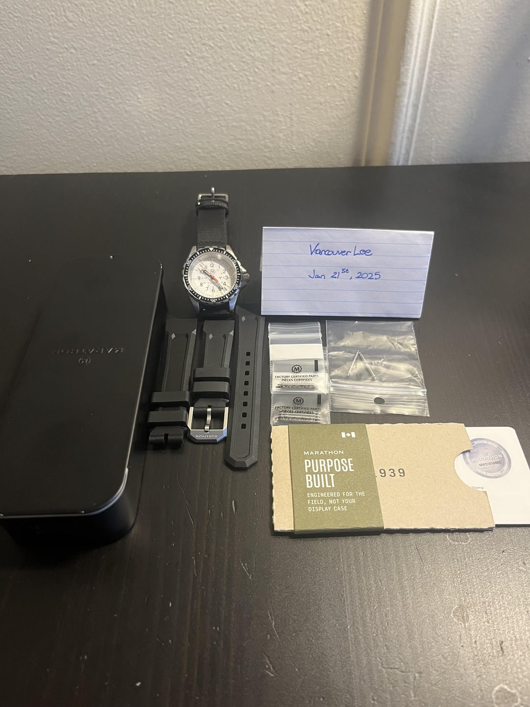 Hi WatchExchangeCanada, I’m selling my Marathon MSAR 36mm Quartz. The watch was purchased by me on October 17, 2024, and still carries its two-year warranty. It’s located in Vancouver, BC. The watch has never been worn with the original strap, which is included. I’ve only worn it with the two-piece NATO strap shown in the photos. Feel free to ask me any questions! The watch is in excellent condition—I’m just not a dive watch person and haven’t been wearing it enough, so it’s time to let it go. Asking price is $600. I’m happy to send a video upon request. Thank you!