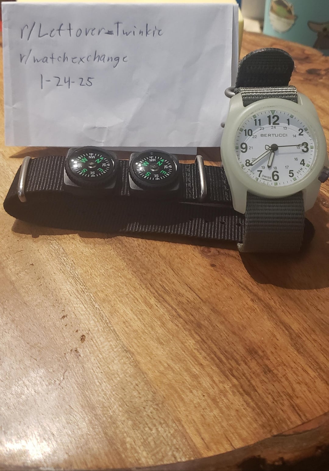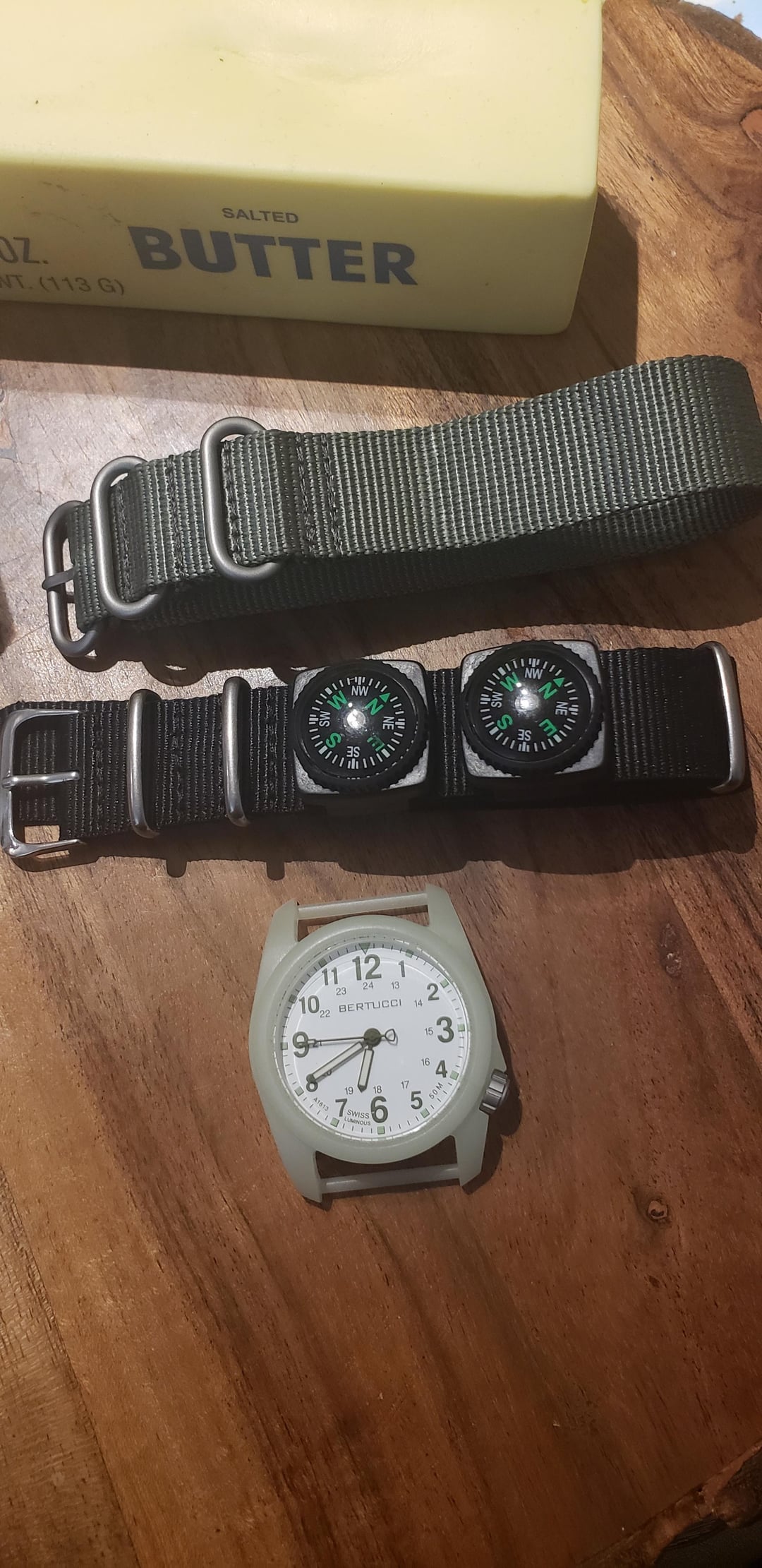 Hiya what you see what you get, if the post is up then it is for sale. ***please comment, so I can go in order regarding who came first*** ***please comment on this post so I can know as well as other redditors have a paper trial that you as a buyer have a solid reputation*** Gather around, I have watch for sale at a discount. Check out the stats: Bertucci Part# 11028 # 209 Defender Drab Glow case series - OEM strap to the best of my knowledge - extra black nato strap with 2 compass attachments - has screen protector to prevent scratches - NO paperwork - NO box - please be PATIENT, I got a new DOUBLE SHIFT job at the medical field and CAN'T have my phone on me. - Free shipping: my city is trash - send me an offer - any questions please feel free to ask. - paypal conus please (If international buyer pays) Thank you for looking at my post -kevo