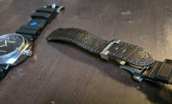Band: Panerai Rubber Strap with Stainless Steel Buckle and Panerai Alligator Strap on Deployment