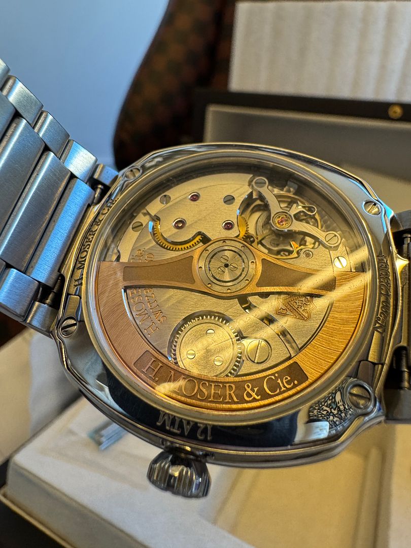 This watch was overhauled at the Moser service center (Zimmerman) and new second hand fitted in March of 2024 and is running great.