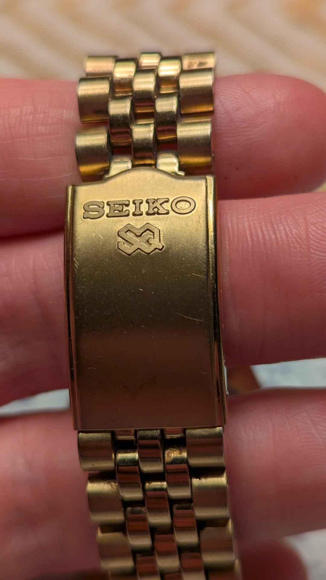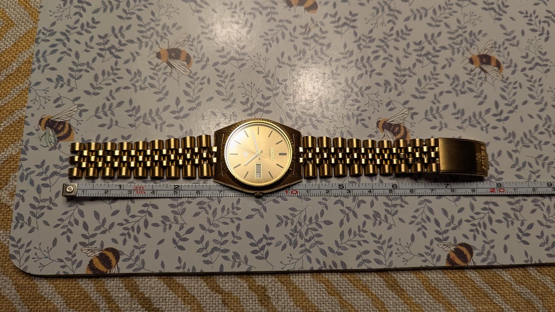A fine and sought-after Seiko from the late 80s. The diameter without the crown is approximately 35 mm. No defects, and the battery has just been replaced. The condition is excellent for its age. I haven’t found a single scratch on the crystal, and there’s only minor wear elsewhere. The bracelet fits wrists up to approximately 19.5 cm. Asking price is 215 USD with shipping included (Economy Mail, no tracking).
