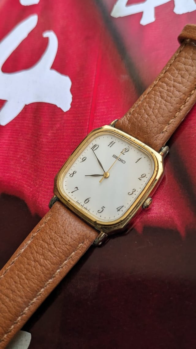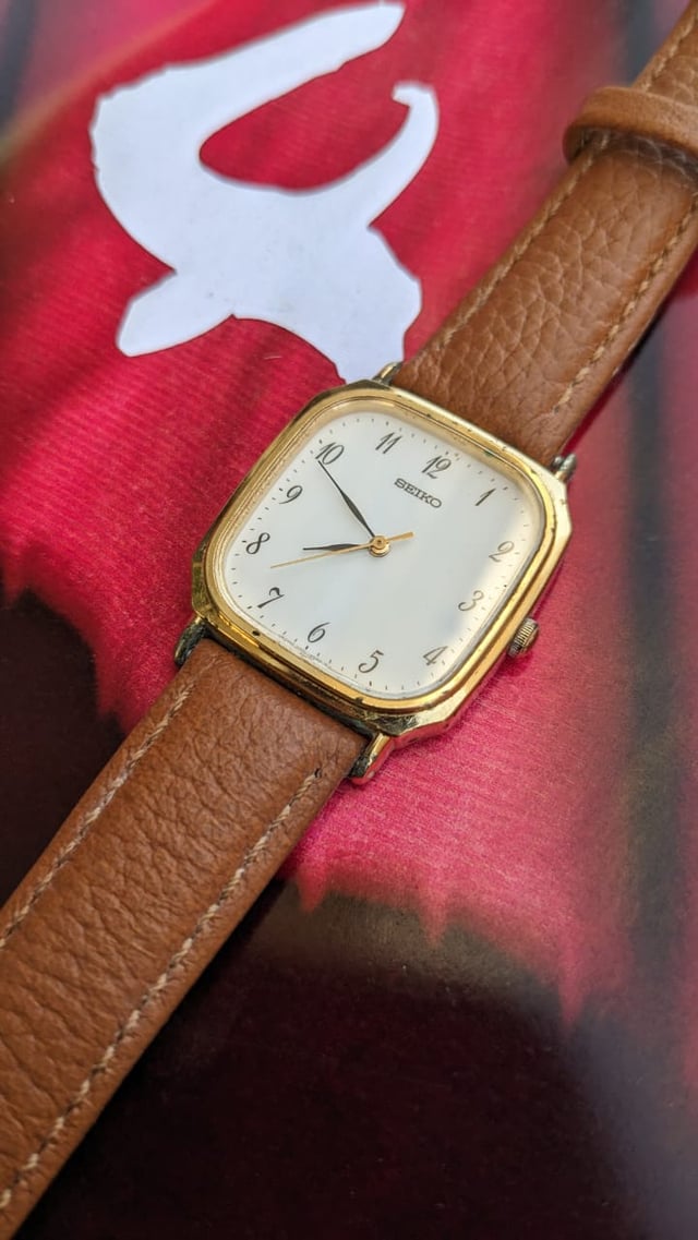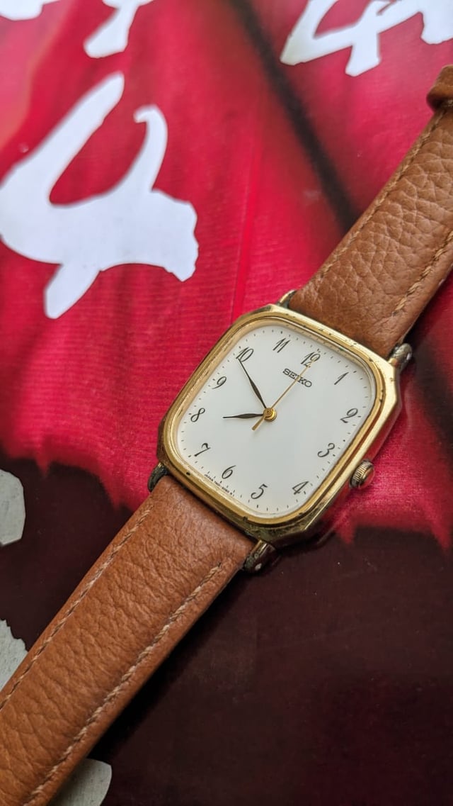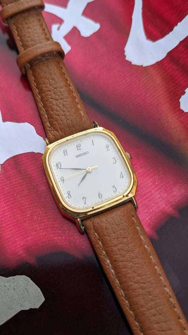 Hello Reddit, Up for grabs is the Seiko Quartz (Battery enabled) watch here with golden dial. This shape is usually Called Tank Reference for the watch is 5p31-5270 . This Timepiece Comes with a Local aftermarket strap. This japanese pre-owned watch is in working condition, with fully functional . Although it doesn't come with original packaging or documentation, it's a fantastic entry-level timepiece. Not Serviced. Please send me a chat with any questions or if you want more pictures. Asking $80 USD no trades. Check out my other listings. Thanks for looking!