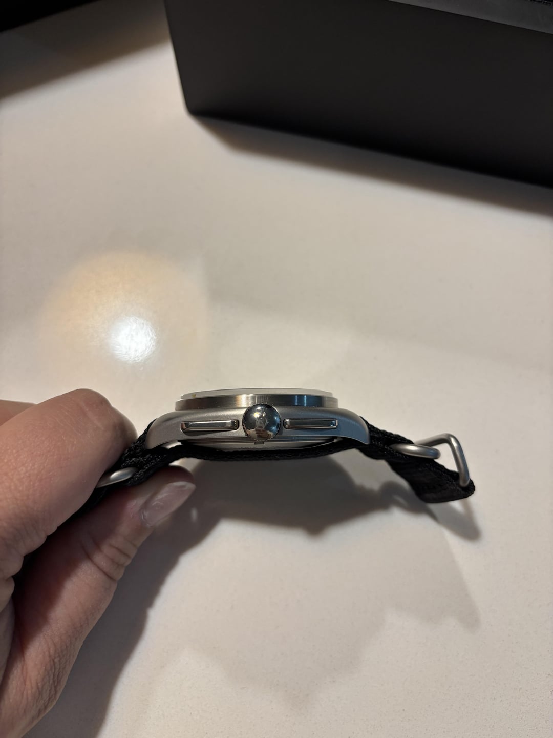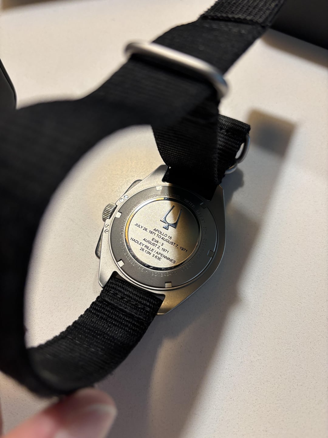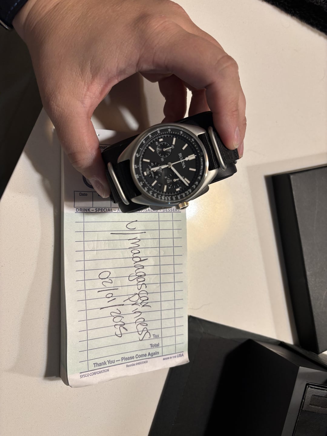 Hello watchex!! Long time no see. Selling our Bulova Lunar Pilot (ref 96B251) today. Bought in 2022 and hasn’t gotten a whole lot of wear, life has happened, and our toddler needs the money, or so he tells us. Watch is in 98.9% condition, I did notice the smallest little knicks/blemishes on the side of the watch opposite from the crown and pushers (see pictures, I tried to capture). Other than that, absolutely flawless. We just changed the battery yesterday; you should be good for a few years with that. Comes with all papers and hang tags, inner and outer box, Bulova branded spring bar tool, and both original Bulova straps. Price: $290 PayPal FF/$295 GS. I haven’t sold in a minute but I do have plenty of references here that you can see in my profile. Shipped USPS priority. Specifications (from Bulova website): • CASE DIAMETER: 45mm • LUG WIDTH: 20mm • CRYSTAL: sapphire crystal • CASE MATERIAL: silver-tone stainless steel • CASEBACK: Solid; bears date of mission & details • STRAP: 2 straps included: leather & NATO • DIAL: Solid black dial with three subdials; white indices & hands • WATER RESISTANCE: 5ATM (50 meters) • MOVEMENT: High performance quartz NP20 with chronograph & six hands; 262 kHz with accuracy of +/- mere seconds a year