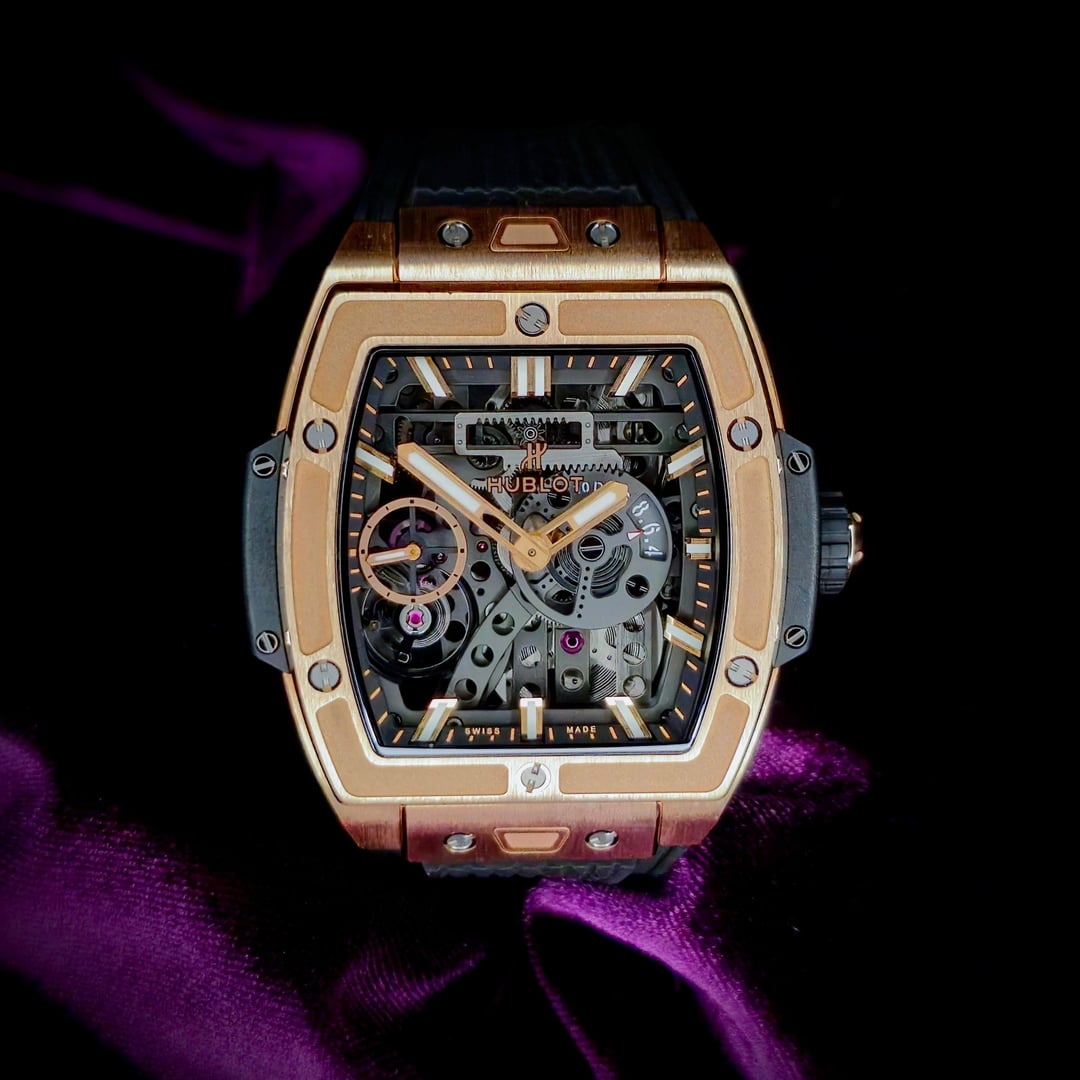 The Hublot Spirit of Big Bang MECA-10 King Gold showcases bold innovation with a 45mm tonneau-shaped 18k King Gold case and a matte black skeleton dial featuring luminous hands and indices. Powered by the manual-winding Caliber HUB1233 with a 10-day power reserve, its exhibition caseback highlights intricate craftsmanship. Finished with a durable sapphire crystal and water-resistant up to 50 meters, this timepiece redefines modern luxury. ◇ Price: **$29,000** Condition: **Mint** Contents: **Complete Set** Ref #: **614.OX.1180.RX** ◇ 🌎 St. Petersburg, FL. 🛩 Fully insured priority overnight via FedEx. 💰 Wire or cash payment, Crypto +2%. 💯% Authenticity & accuracy guarantee. 🤝 Many references available. ♻️ Trades are considered. ◇ I aim for clear communication with honest and fair deals every time. Video calls & face to face meets are welcomed.