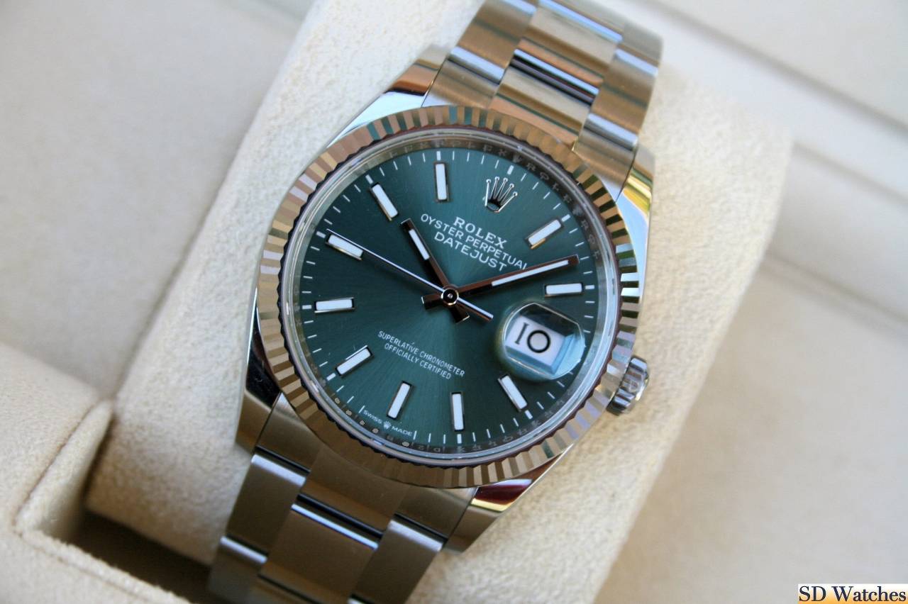 This watch come in 31MM case Midsize with Fluted bezel and Oyster Band and Green Mint dial.