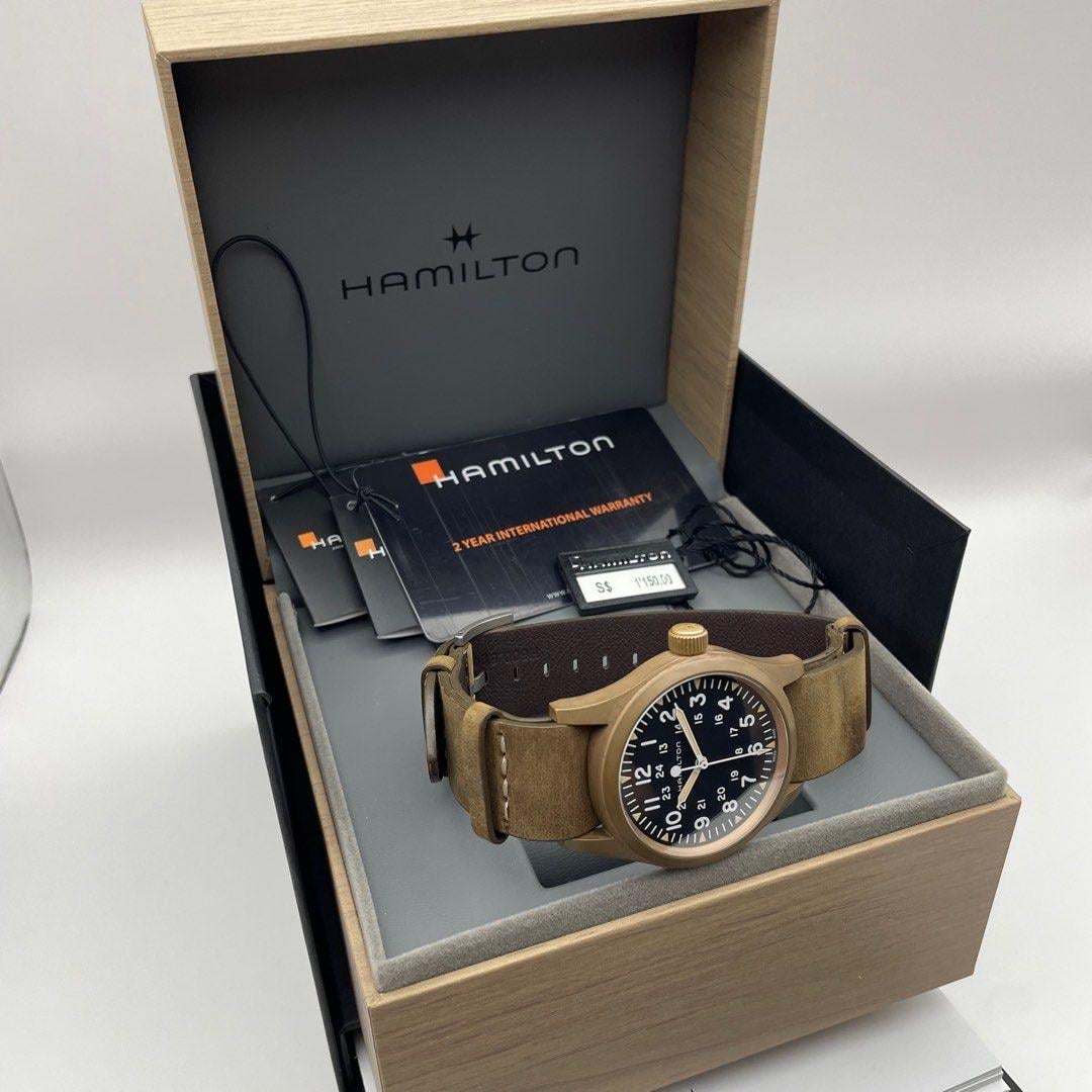 Hamilton Khaki Field Mechanical Bronze - Reference H69459530 Manual Wind 🎁 Full Set Original Box & Warranty Card ✅ Dated 2022 Q3 Mint Condition, Lightly Used \[Payment Mode\] Wire Transfer Instagram: boxandpapers\_ We are a licensed Watch Dealer based in Singapore, with plentiful reviews across different platforms over the years. Thank you :) Price: 750 USD Shipped from Singapore