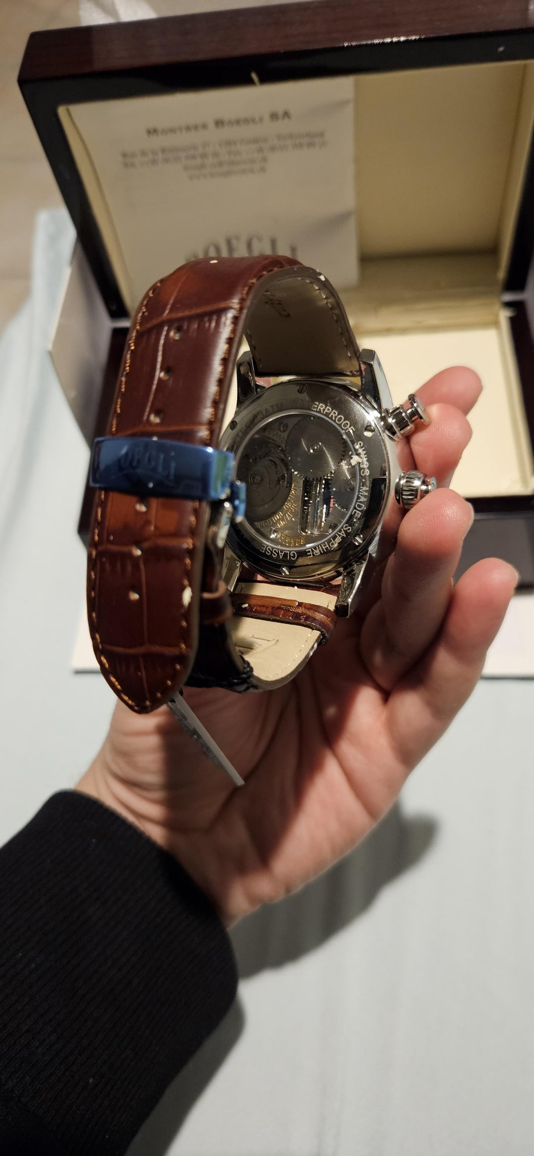Just to show that the mechanism works perfectly: https://www.kapwing.com/videos/67a3b021e53672fae9ca8d2a Completely new with warrenty Boegli watch. Price:2200 Sold originally for twice as much : https://boegli.com/products/m915
