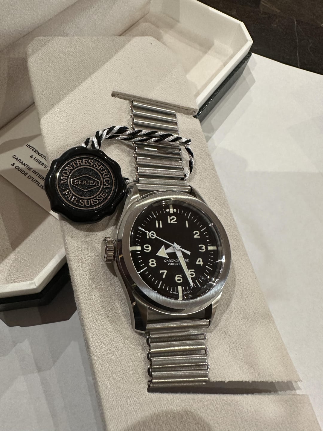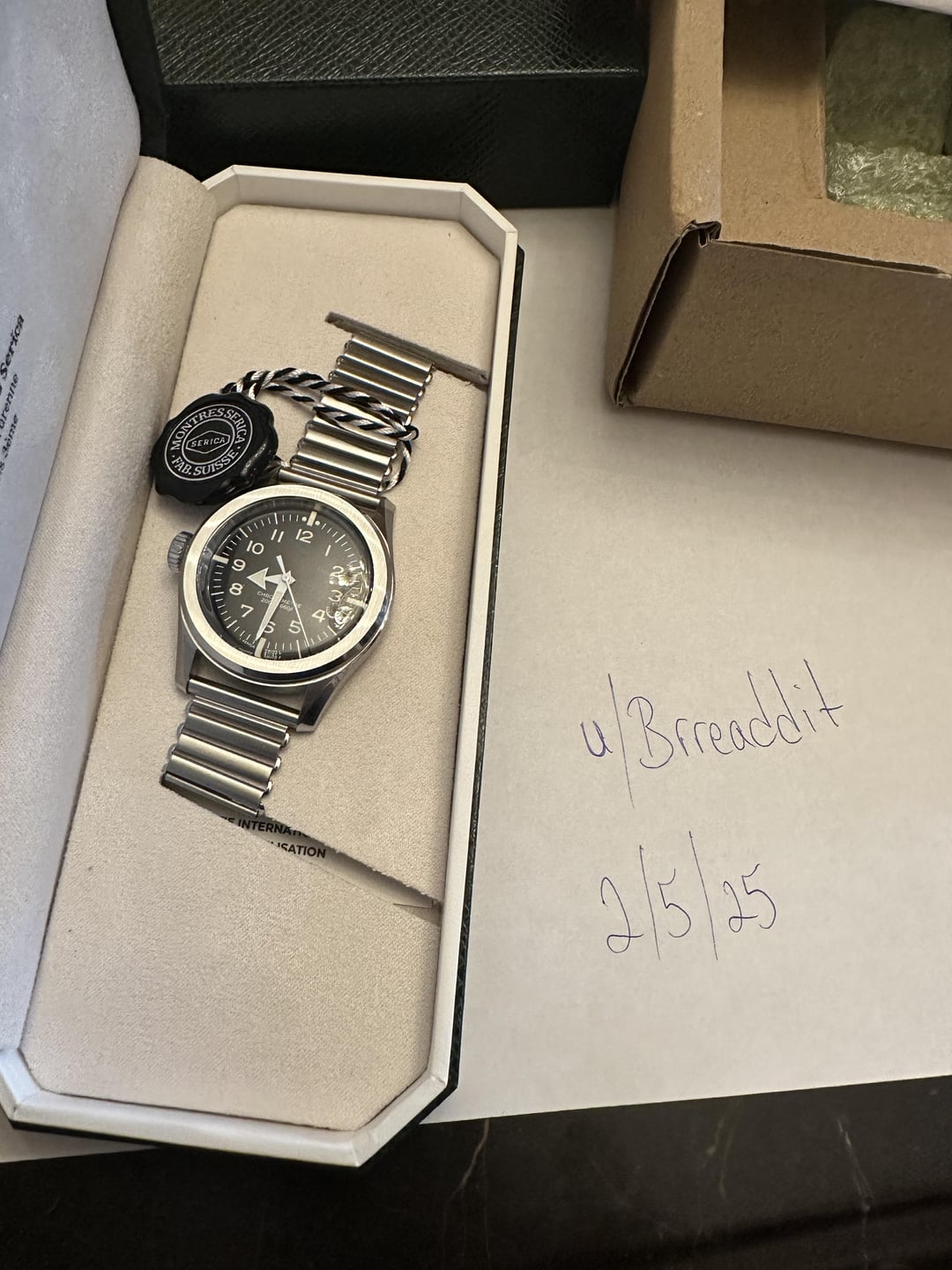 Hi WatchEx! I’ve bought many things here and the time has come for my first sale. I have my lightly worn Serica 6190 Commando Dial with a Left Hand 9H Crown. I wore it for about a week and it’s been sitting in the watch box ever since. I’d rate it 9/10 condition and the only area of wear is the standard surface scratches that come with a polished bezel. It’s an excellent daily piece but unfortunately came in to the collection late in the game. A super legible 37.7mm case size 10.4mm thick adventure watch. This comes with the EXTRA LONG BRACELET. Pics & Timestamp: [https://imgur.com/a/St7WF57](https://imgur.com/a/St7WF57) I’m asking $875 SHIPPED CONUS. Open to discussion for international shipping but not preferred. Not looking for trades as these funds are already earmarked to cover a purchase (lol). Full kit, down to the packing peanuts and plastic sticky bits. Additional pictures as requested. Link to Serica for original specs: [https://www.serica-watches.com/en/product/6190-commando/](https://www.serica-watches.com/en/product/6190-commando/)