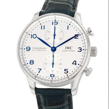 | IWC Portuguese Chrono Automatic Steel Blue Numbers 41mm Watch IW371417 sellawatch (2919) |