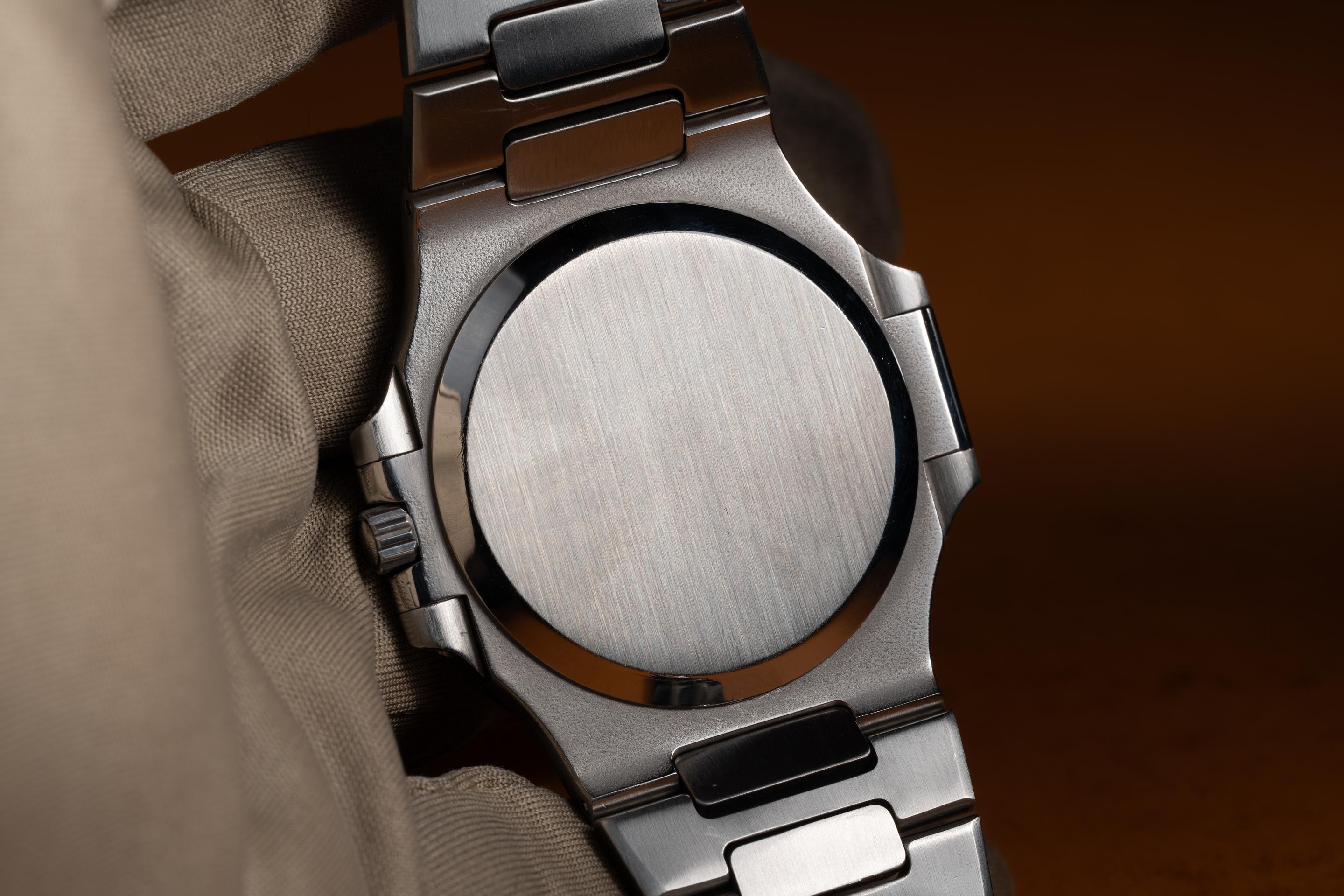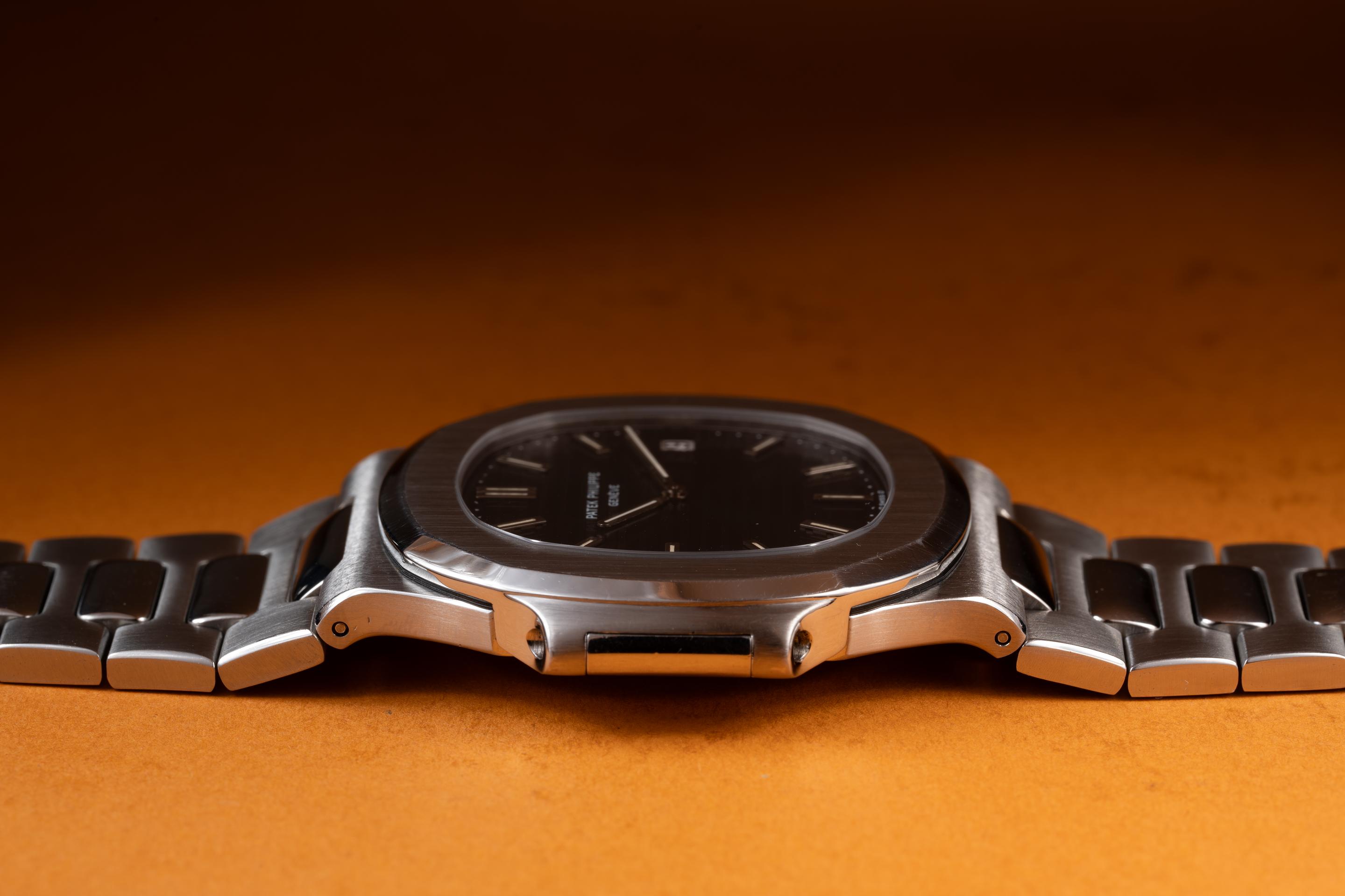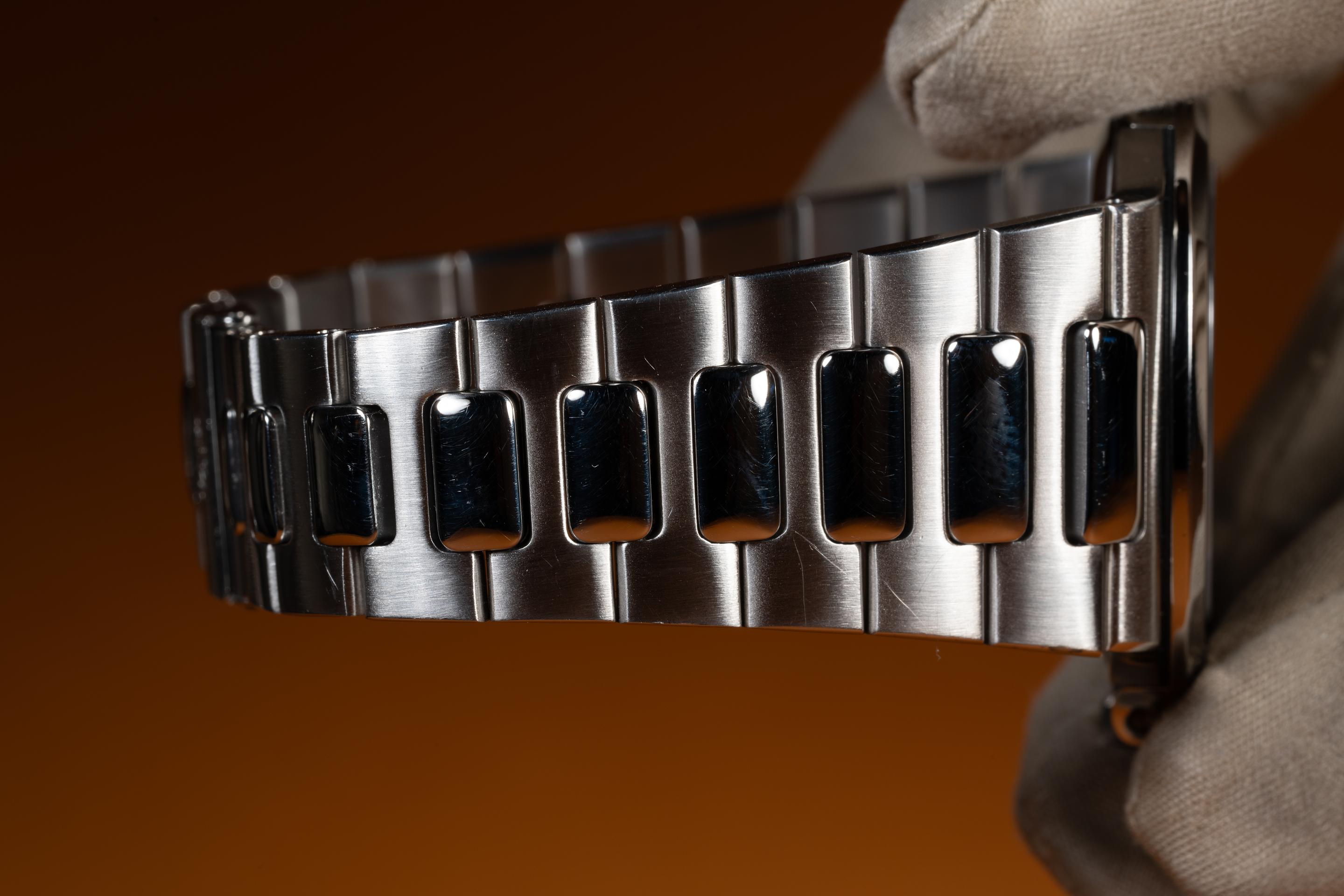 Description: Case: The 42mm case is excellent showing prominent beveling and some light wear from use. The stainless bezel is also in excellent condition showing some very light wear from use. Dial: The blue sigma dial is excellent showing only very light wear for its age. The lume has aged to a clean creamy hue and the hands have been relumed and matched to the dial. Bracelet: The 18 link Nautilus bracelet is excellent showing only very light stretch. The bracelet will fit up to a 17.5cm. / 6.88" wrist. The band has a newer Patek deployment clasp. Accessories: Extract form the Archives & October 2024 Service Papers.