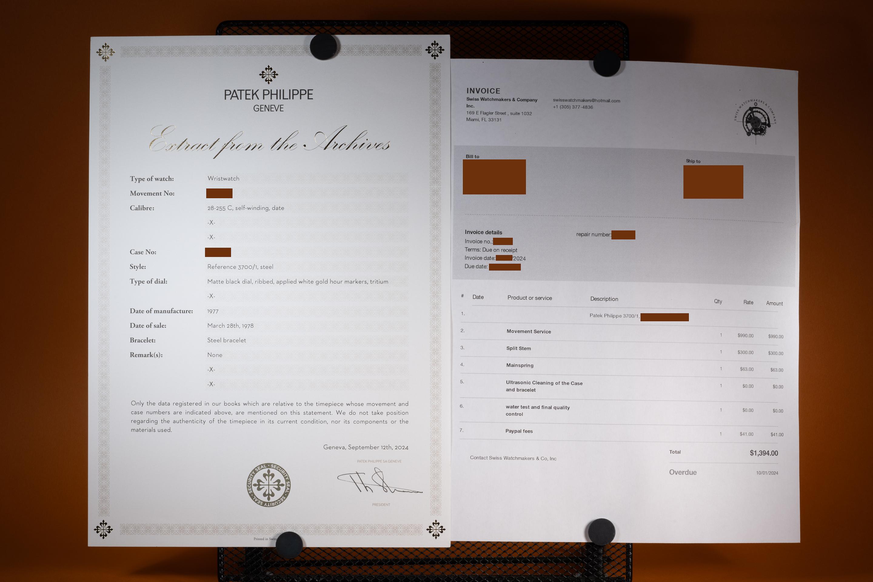 FS: 1977 Patek Philippe Nautilus 3700 Blue Dial with Extract from the Archives