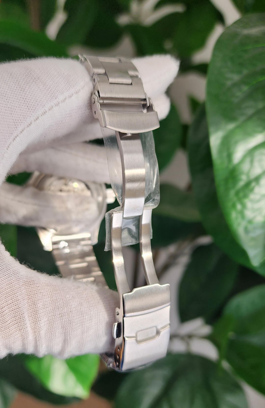 165 USD *firm* + Shipping (15 for regular or 25 for express) via UPS, paid via PayPal F&F Location: Manitoba, Canada This is a newly built watch using aftermaket parts based around seiko's nh35 automatic movement. Read below for the features that this watch boasts: * Sapphire crystal * Screwdown crown * Screwdown caseback * Solid end-links * High quality case and bracelet Dimensions: * Case diameter: 40mm * Case thickness: 12mm * Lug width: 20mm Timestamp: https://imgur.com/a/NzalEOe Video: https://imgur.com/a/DYrb3Lj Quality control tested. No issues. It's in perfect condition.