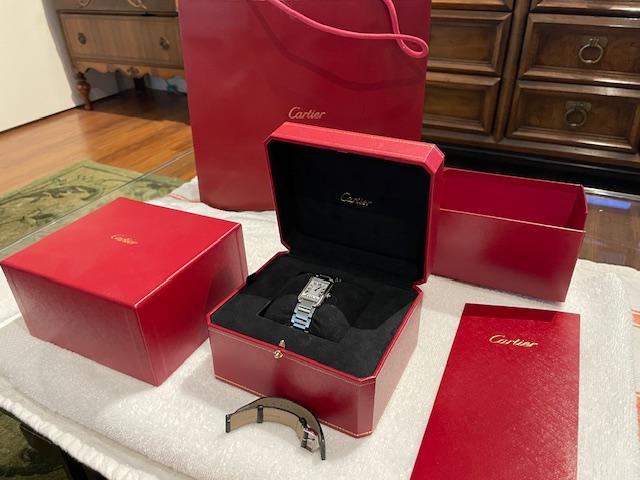 I'm selling my wife's Cartier Tank (small size) that I purchased directly from the Cartier store in July 2023. She has only worn it a few times and has no desire to keep it.
