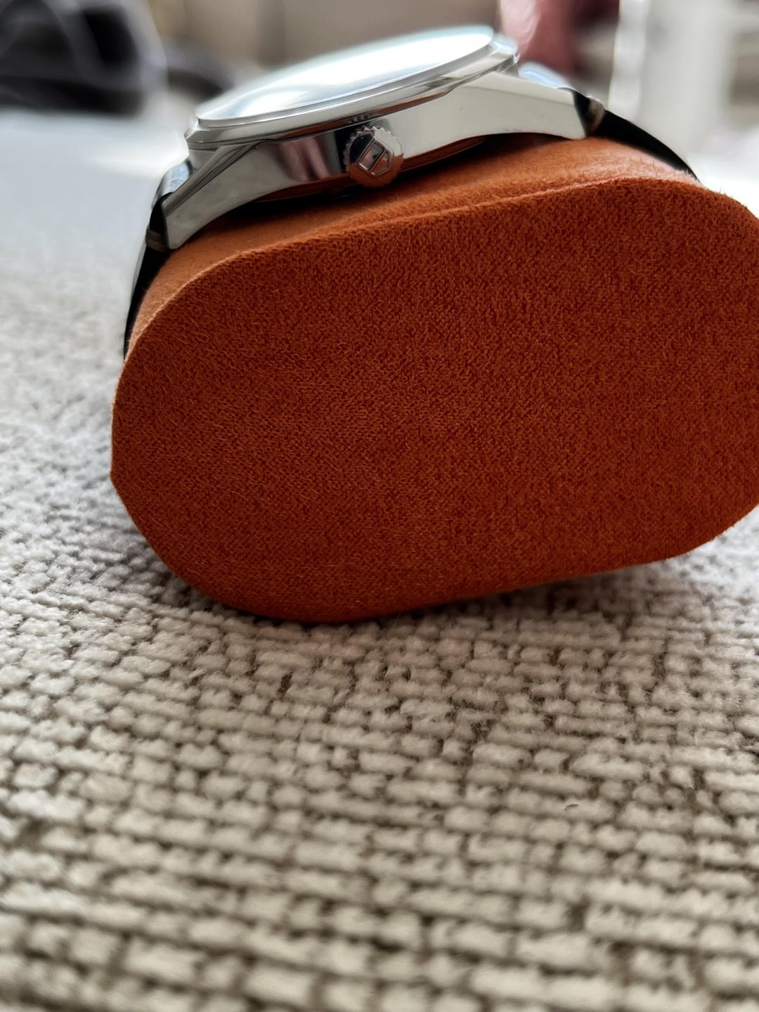 Hey! Tag Heuer Carrera 39 mm dial size 47 mm lug to lug Calibre 5 movement (Sellita SW200-1 base) Originally purchased off of Crown and Caliber in 2022 when it was still a company. Works great, with minor scratches from wearing on the sides of bezel and near the spring sites. Comes with this blue leather band and the original Tag stainless steel bracelet. Asking $985 shipped via Zelle or Venmo. Let me know if you have any questions.
