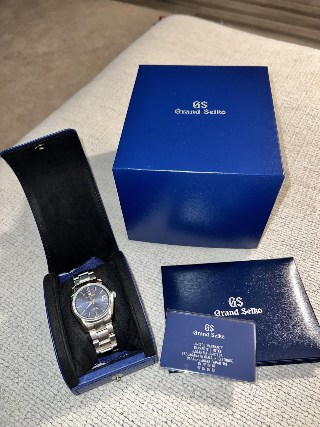Grand Seiko SBGH273 Heritage Collection Four Season Fall Shubun Dial [Timestamp](https://imgur.com/a/OCWIwHj) $6,250 This is a modern re-interpretation of the celebrated 62GS from 1967. The 62GS was not only Grand Seiko’s first watch with an automatic movement, but it was also, along with the 44GS released the same year, the watch that first expressed the design grammar, the Grand Seiko Style, that still shapes all Grand Seiko designs today. Like its predecessor, this modern re-interpretation has the characteristic sharp edges and perfect distortion-free surfaces that only Zaratsu polishing can create and a wide dial opening which was achieved thanks to a bezel-free construction. The dial is inspired by the clear night skies that Japan enjoys at Shūbun, the sixteenth of the twenty-four sekki or seasons which falls around the time of the autumn equinox. The gold toned Grand Seiko lettering and seconds hand stand out in sharp relief against the deep blue dial, echoing the way that moon and stars illuminate the sky at night. The watch is powered by the hi-beat automatic caliber 9S85 and is hand assembled by the skilled craftsmen and women of the Grand Seiko Studio Shizukuishi. This watch is 100% brand new, never worn, plastic still around the dial, crown and bracelet. Full set, all links on bracelet. Exterior: Stainless steel Case back: See-through & Screw case back Glass Material: Box shaped sapphire crystal Glass Coating: Anti-reflective coating on inner surface Case size: Diameter 40.0mm Lug-to-lug 47.0mm Thickness 12.9mm Band width: 21mm Clasp type: Three-fold clasp with push button release The perimeter of Band: 190mm Box - Papers - warranty card dated 02/11/2025 Service History: none Watches will be shipped via FedEx upon receipt of bank wire only. Sorry, no P2P payment platforms due to scams. Venmo G&S with references. Prices are for an outright purchase, no trades. Inquiries: Instagram, PM or chat Member of r/watchexchange for one year. First time poster, long time lurker. I have excellent references on other platforms and forums which I can provide upon request. Please buy with confidence. All sales are final.