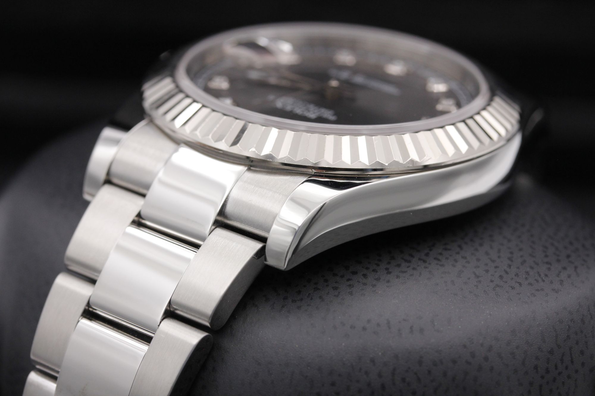 | Rolex Datejust II 41mm Diamond Rhodium White Gold Fluted Steel Box Papers elegantswiss (1165) |