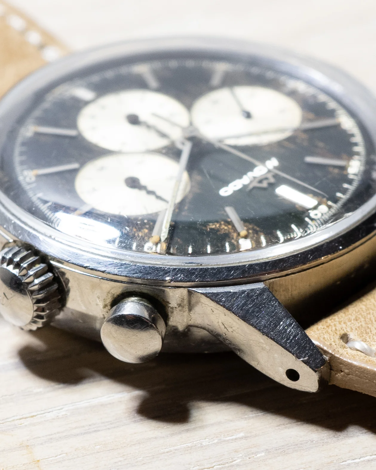 Dial/hands: Lume on dial and hands has aged to a nice sandy hue with lume loss at 11 and 12. Dial has beautiful and unique aging throughout that shows a brown patina in light.