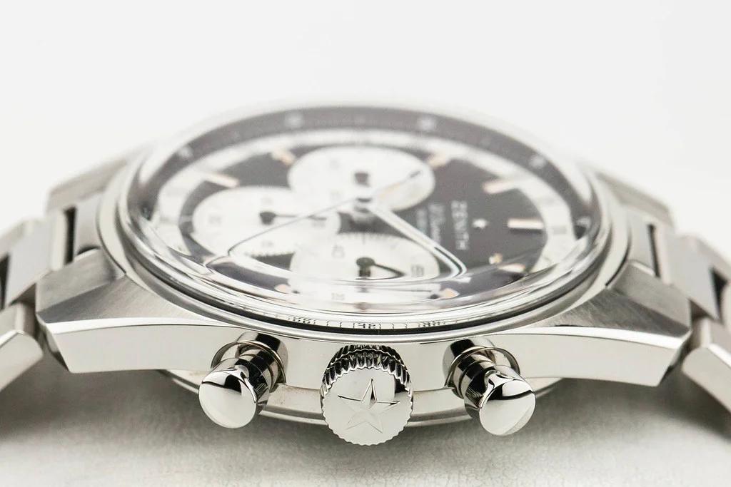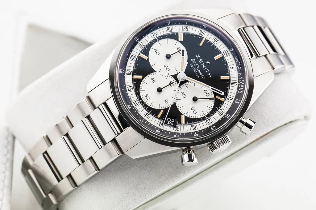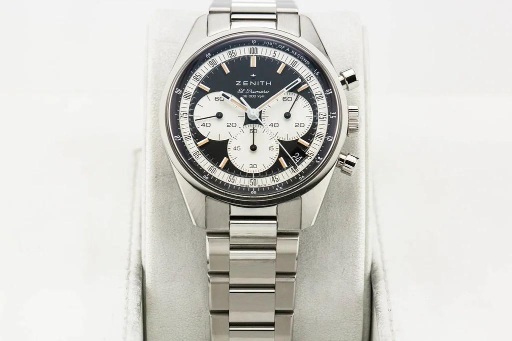 Up for sale is an excellent condition Zenith Chronomaster Original 38 mm Black Dial reference # 03.3200.3600/21.M3200. It comes with all boxes, papers, booklets, hang tag and Zenith International Warranty from February 2023.