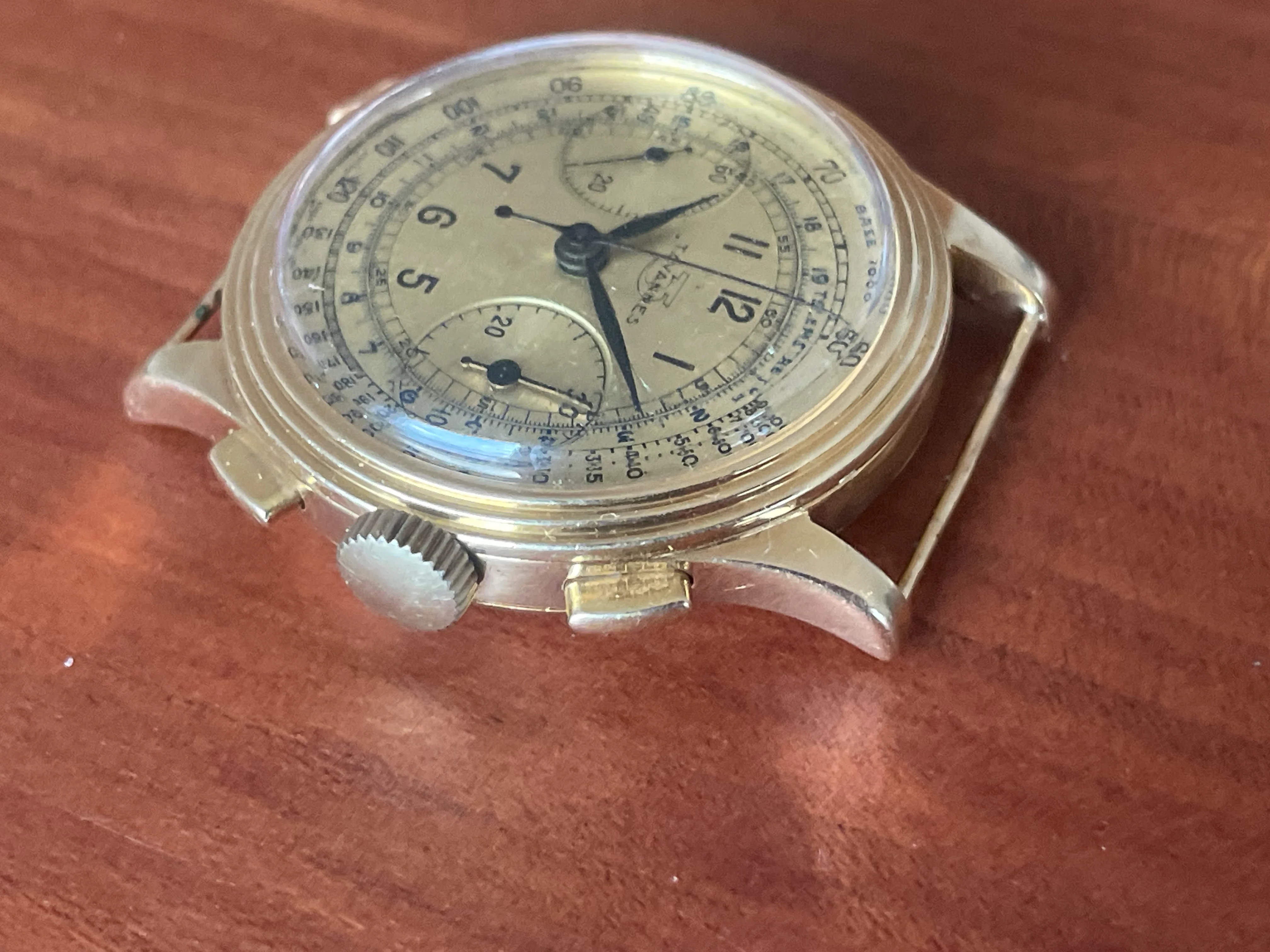 1940s Tavannes Multiscale Chronograph 36mm 18K Step Gold Case