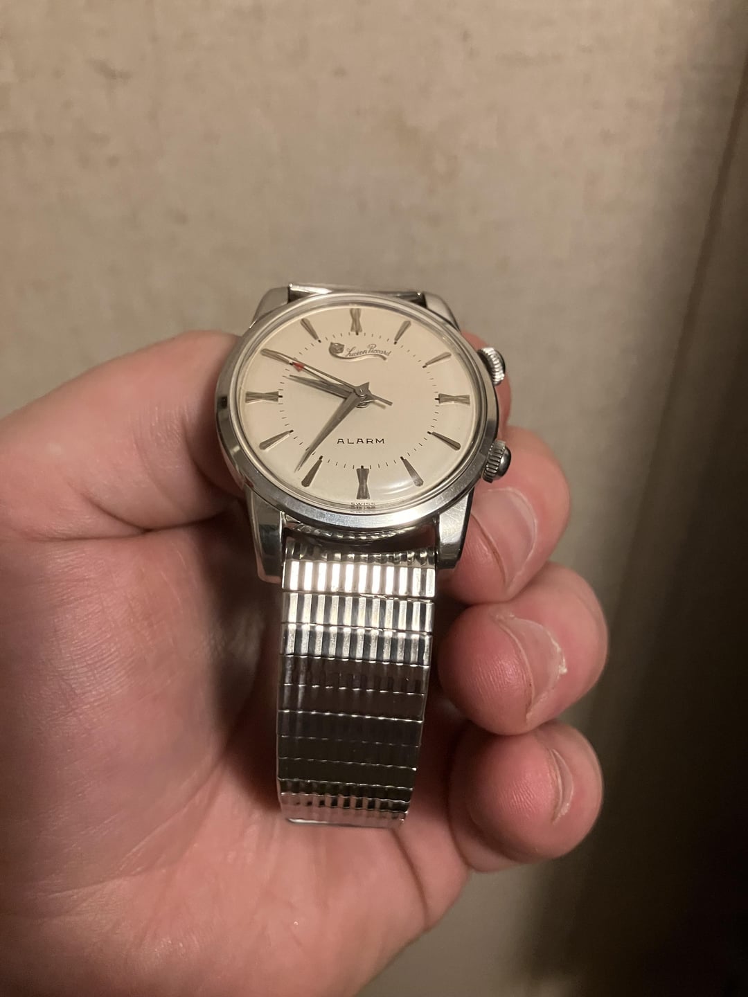 Vintage L. Piccard alarm watch. Like NOS condition. Keeping great time, while the alarm function works without issue. Just serviced in January. Case, Bracelet and crystal are in pristine condition. 34MM. Nice cream color dial. Asking $499 OBO shipped. Feel free to reach out with any questions. Don’t miss out on a really cool piece, from a time when the brand was respectable. Thanks for looking!
