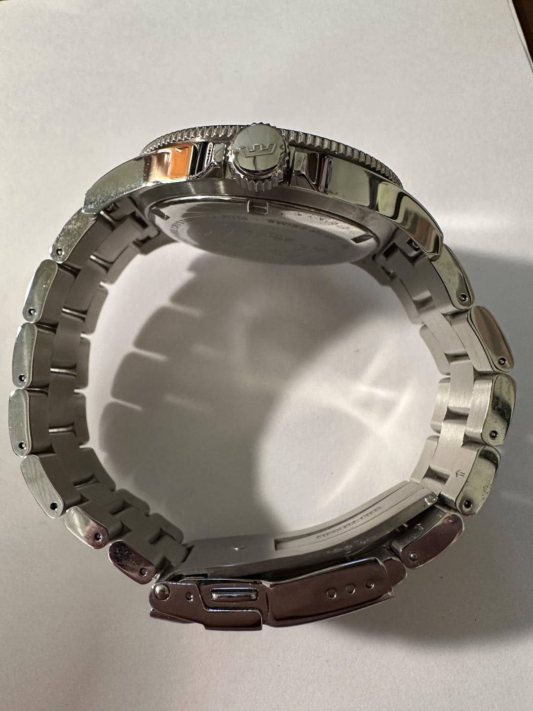 SPECIFICATIONS Caliber: 715 Swiss Quartz Case Material: Stainless Steel Back: Solid Case Back Diameter: 42 mm Waterproof: 200 m Glass: Sapphire Crown Type: Screw Down & signed Strap/Bracelet: 22mm Stainless Steel Fold over safety $229 obo shipped in the CONUS. Venmo/Paypal F&F or G&S + 5%. Thank you!