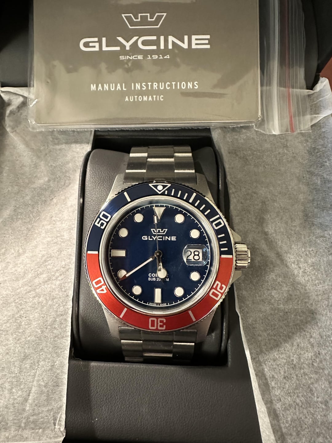 10 mesi fa [WTS] Glycine Combat quartz, GL1016 42mm Pepsi bezel, line new with box & papers. $299
