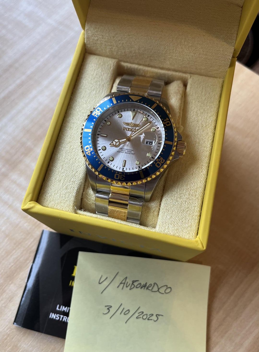 Selling a new, never used Invicta Professional Diver in two-tone. Cleaning out watches I’ve never used. The battery is dead, but should be good to go with a new battery. Fully stickered up and never used. Asking $15 Shipped CONTUS