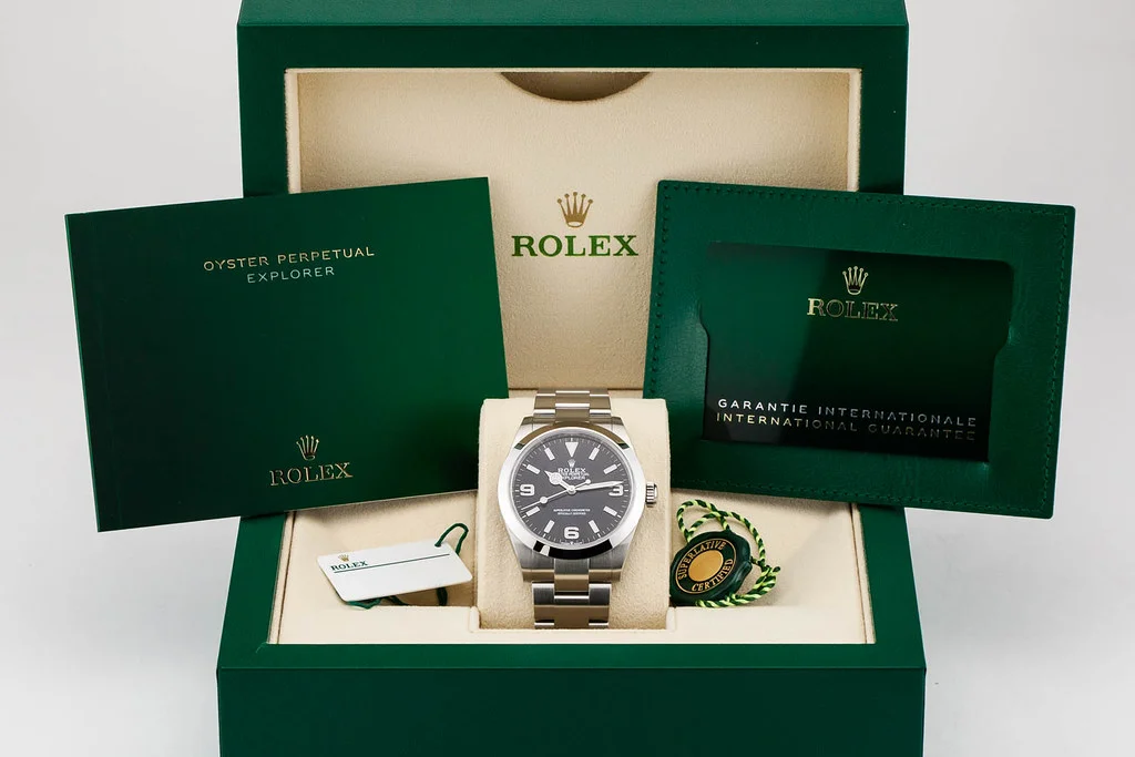 Up for sale is a brand new Rolex Explorer I 40mm Black Dial, reference # 224270. It comes complete with all boxes, papers, booklets, hang tags, and Rolex Warranty Card dated October 2024.