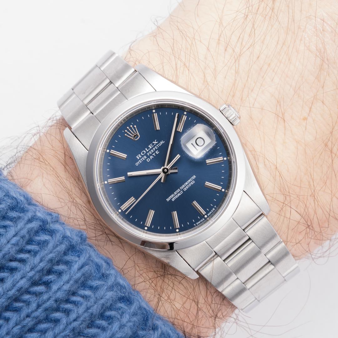 **Model**: 15200 **Condition**: Excellent(very little signs of wear) **Year**: 1993 (S-Serial) **Scope**: 2012 RSC Service / 2025 Service Card **Movement**: Automatic **Case Width**: 34.5mm **Strap Length**: 7.25" **Listing ID**: 220001818 **Price**: Offered at $4,350. Wire, Zelle, or Crypto [Album](https://imgur.com/a/bVOnmBz) | [Timestamp](https://imgur.com/L147zrd) **Our Take** One of the most elegant blue dial's Rolex makes, this Oyster Perpetual Date Reference 15200 will not disappoint. On the wrist, it's a classic, sized comfortably at a mid-size diameter of 34.5mm. It wears a bit smaller than the 36mm Oyster Perpetuals and Datejusts from this era, but it's still plenty versatile across various wrists sizes.What makes this watch so great is the simplicity. Oyster case, date window with cyclops, and a striking blue dial. This particular ref. 15200 is in excellent pre-owned condition, meaning there are very light to no signs of wear. The movement just underwent a full service with new gaskets ensuring proper water resistance. The watch includes a 2012 RSC Service Card & 2025 Service Card.