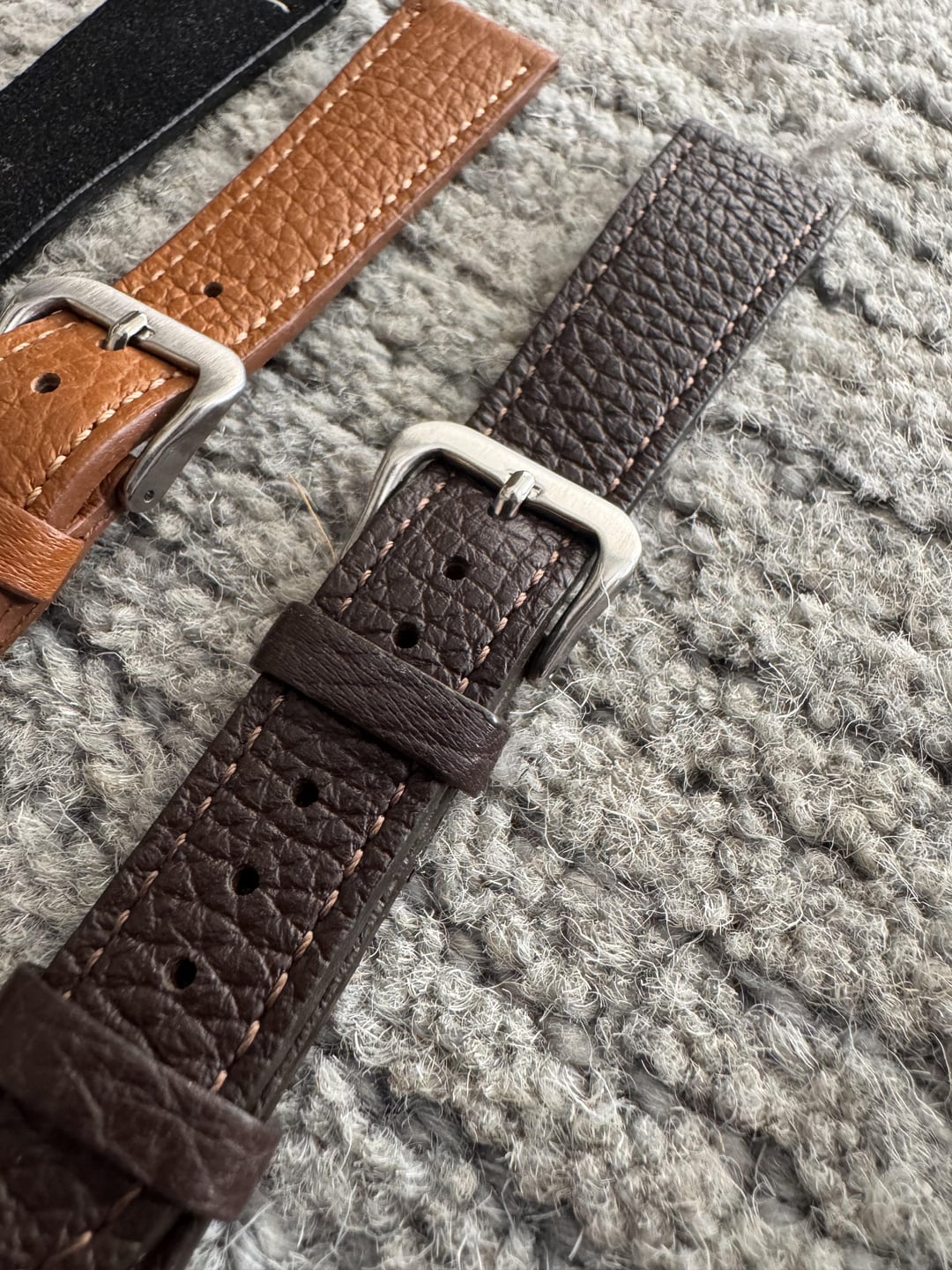 Great Value straps for sale! All are in new condition except the humpback blue strap, which has been worn a couple times and has a small tear on the top right area of the inside part of the strap. See straps here: https://www.analogshift.com/pages/watch-straps $30 Each Shipped Conus (Zelle/Venmo)! All regular length. (In Order Left To Right) Nome Black Suede - 20mm Jones Brown II Cervo - 19mm Buckland Brown II Cervo - 20mm Annapolis Blue Suede - 19mm Amelia Blue Cervo - 19mm Humpback Blue Vegan - 20mm Feel free to reach out with any questions! Timestamp: https://imgur.com/a/c4m6tGD