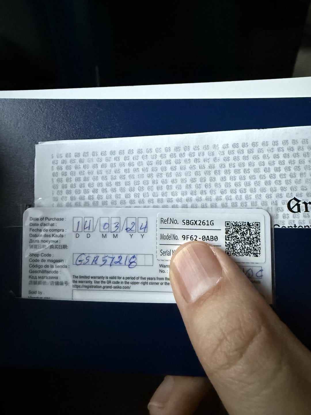 Selling my Grand Seiko SBGX261 Full set – original box, papers, and warranty card (dated March 2024, 4 years left on warranty) Minimal wear – only light signs of use, no major scratches or dings Accuracy – running within +/- 0 spd per GS 9F movement specs Price: $1,500 (shipped within the US), Zelle/PayPal F&F. No trades please. Open to in person transactions in the SF Bay Area as well. Feel free to reach out with any questions!