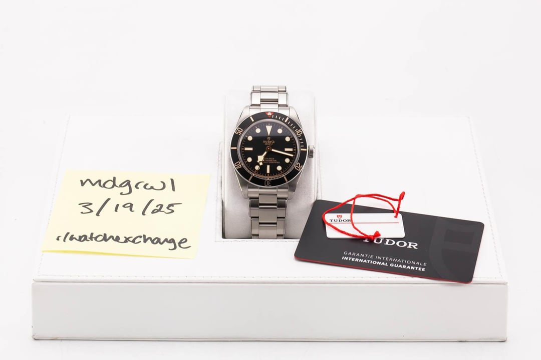 Up for sale is an excellent condition Tudor Black Bay 58 39mm on Bracelet, reference # 79030N. It comes complete with all boxes, papers, booklets, hang tag and Tudor Warranty Card dated July 2021. Excellent Condition / Complete Set **Item Details:** Tudor Black Bay 58 79030N 39mm Stainless Steel Case Tudor Calibre MT5402 **Timestamp:** [https://live.staticflickr.com/65535/54397103696\_a7ac3b9665\_b.jpg](https://live.staticflickr.com/65535/54397103696_a7ac3b9665_b.jpg) **Trades:** We are cash buyers and will consider all modern trades. **Payment:** Listed Price is for Bank Wire, Zelle or any no-fee payment method. Paypal is an additional 3.5%. **Price:** $2995 - Shipped 2 Day Air ! **Shipping:** Fedex Express within the US. International Shipping adds $150. **Returns:** Returns accepted within 48 hours of receipt only if the watch is misrepresented. **Contact:** Please email or text for fastest response. [[email protected]](mailto:[email protected]) or call / text 207-209-4000 Buying a watch on the internet can be scary. We know. You want an established business, accurate presentation of product, followed up by quick responses, and expedited shipping. We understand. That is why we deliver this along with honest, straightforward transactions backed by our well-built reputation. We are new to Reddit but have been selling on forums for many years, and have literally thousands of references. All photography is original. 6.625% state sales tax applies to New Jersey shipping addresses only.