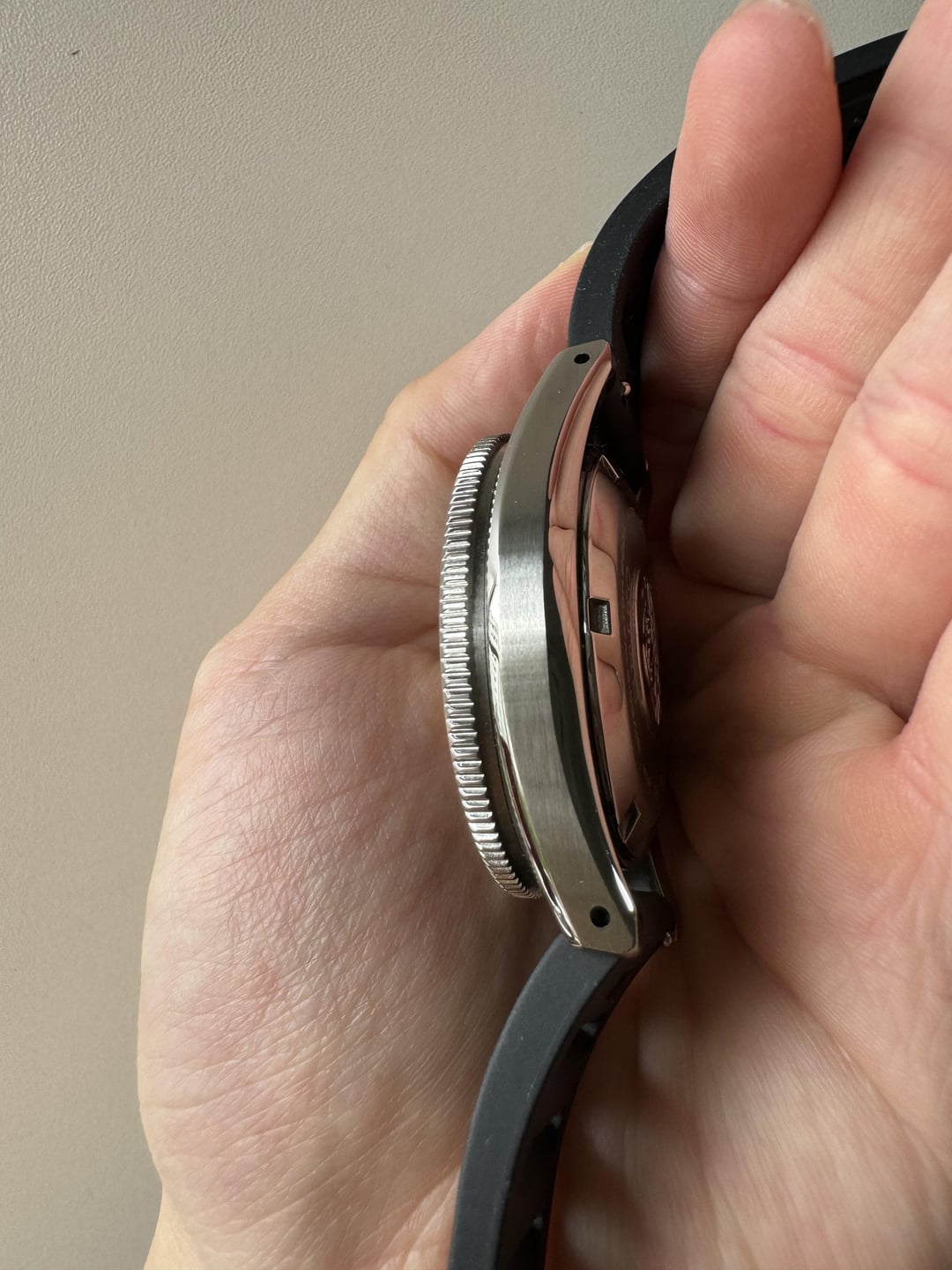 Price: 550 USD + label (shipping from Singapore). $28 to USA via FedEx 3-5 days shipping (I’ll cover the rest). Around $25 to Canada/Europe, $15 to Asia/Australia - take about 2 weeks. Payment methods: Wise / Revolut (no fees), Crypto, PayPal G&S (+4.5%) or PayPal F&F. Up for sale is my Seiko Prospex SBDC105 / SPB147 with the lume pip at 3 o’clock. Comes with original box, papers, original unused rubber strap and a used FKM vented rubber strap. Watch is in pretty good condition - no major scratches or dings can be seen. Crystal is perfect, with some hairlines around the watch lugs and caseback from usual wear. Bezel insert has no visible scratches as well. The OEM buckle was used with the vented strap for a while, so it has some light hairlines on it. Both straps included. Diameter: 40.5mm Lug-to-lug: 47.6mm Case thickness: 13.2mm Lug width: 20.0mm Comment before chatting/PM, thank you!