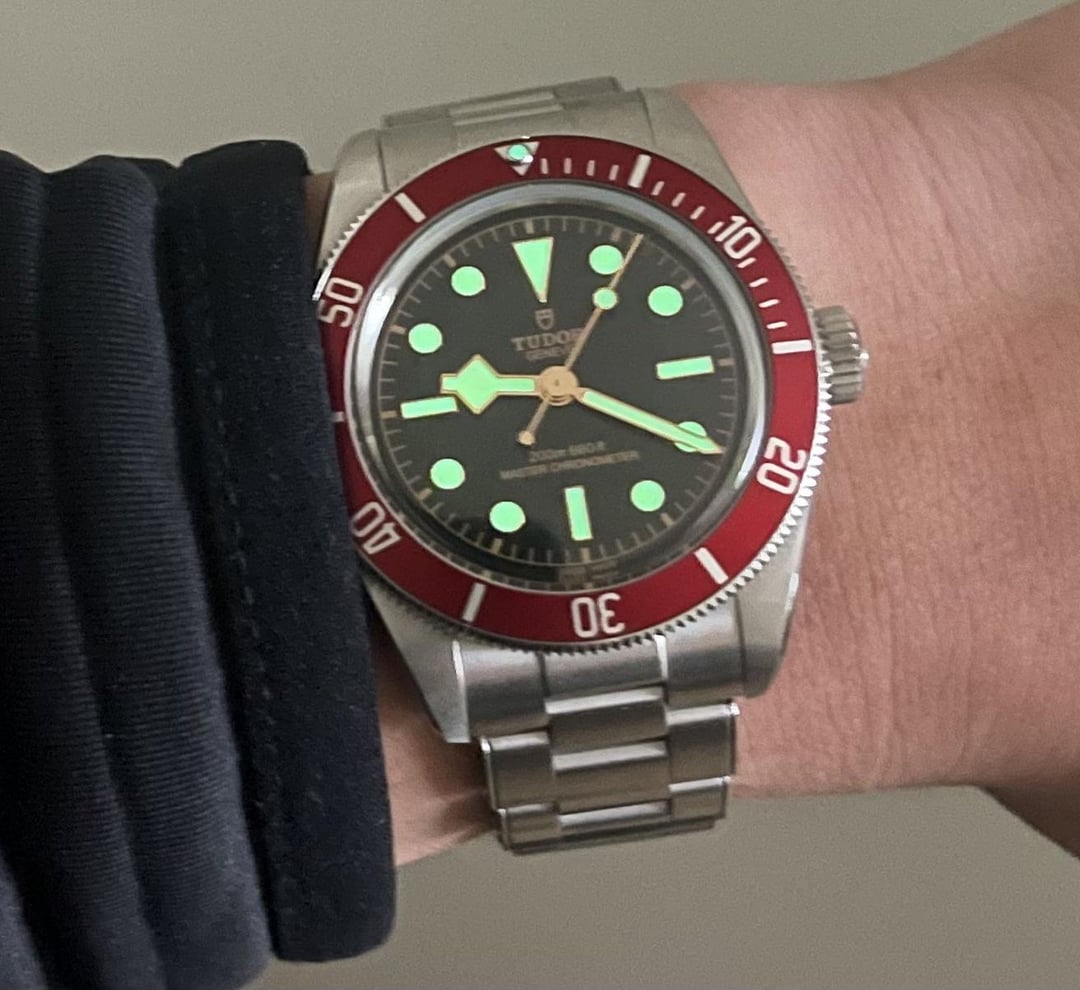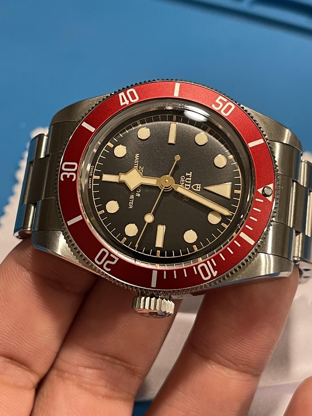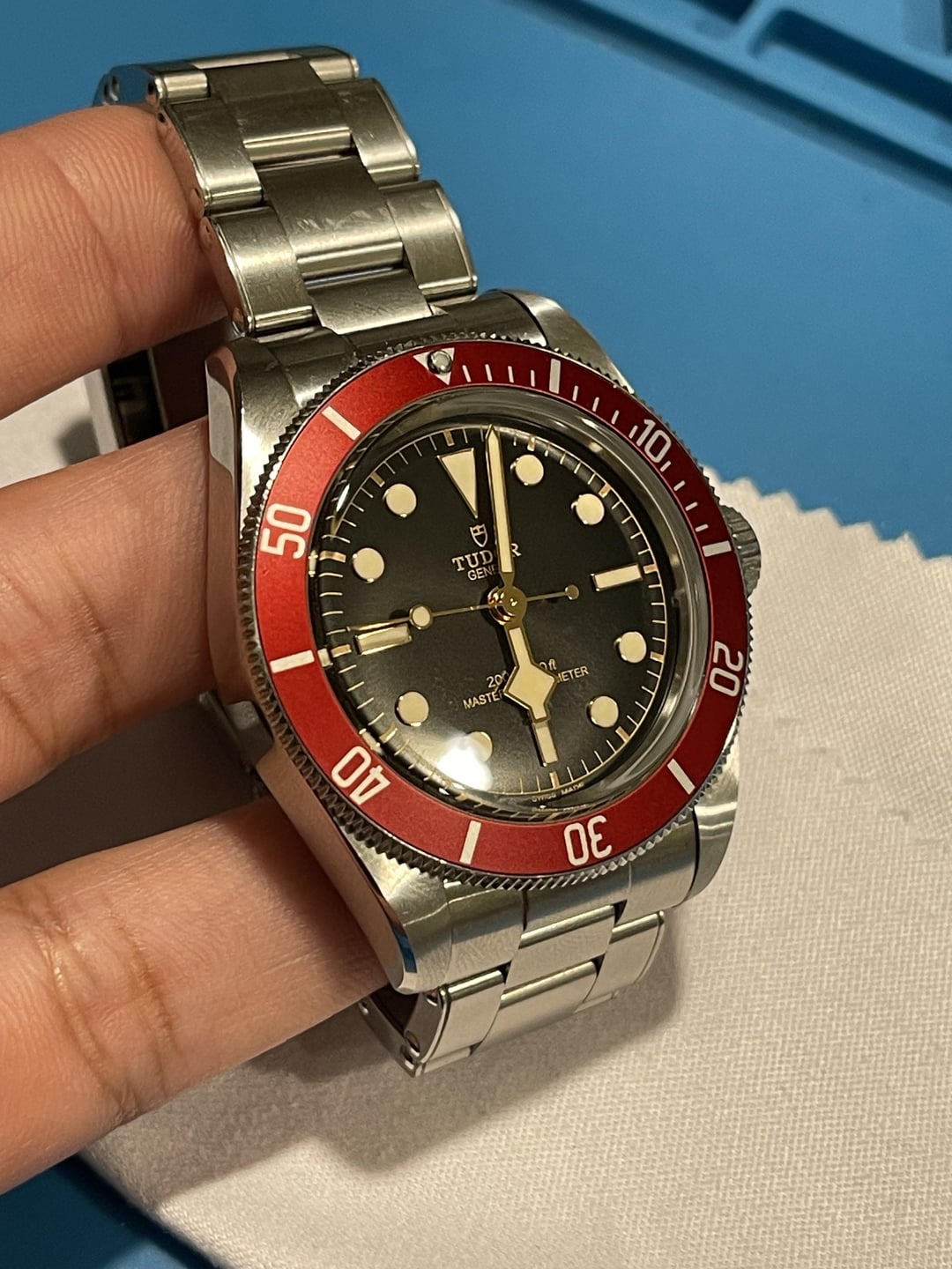 Letting go of my Bergundy Tudor Black Bay 41 METAS. Really wanted to love it, but it just didn’t click for me as a dress watch. Can’t justify wearing it as a work watch in the hospital either 😬. Selling for $2800 shipped CONUS. Box, papers, active warranty card dated September 2023. Overall, it’s in good shape. Sized right now for my 7.25” wrist which the 41mm size works perfect for. T-Fit clasp works perfect and is very convenient for fine tuning fit on the fly. Previous owner wore it a lot, so there are scuffs and the usual desk diver marks on the clasp. Only real deep wear is on the lugs from strap changes. Scratches on case back. I am the second owner. Only worn a handful of times for formal events. Love the watch overall, but I know someone out there will give it more wrist time! Thanks for looking!