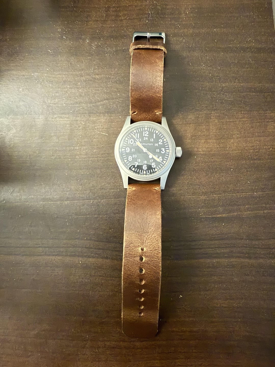 Hi all, I’m selling a Hamilton Khaki Mechanical in great pre-owned condition. Bought from a redditor a couple years ago but have worn it perhaps 3 times. Including a full-grain (perhaps Horween I don’t remember) leather strap I was using as well, along with a green nato strap and the original leather strap. Accepting Venmo and PayPal for $325 shipped in the US. I’m established on Grailed and eBay as well if you would like to check reviews/references. Thank you.
