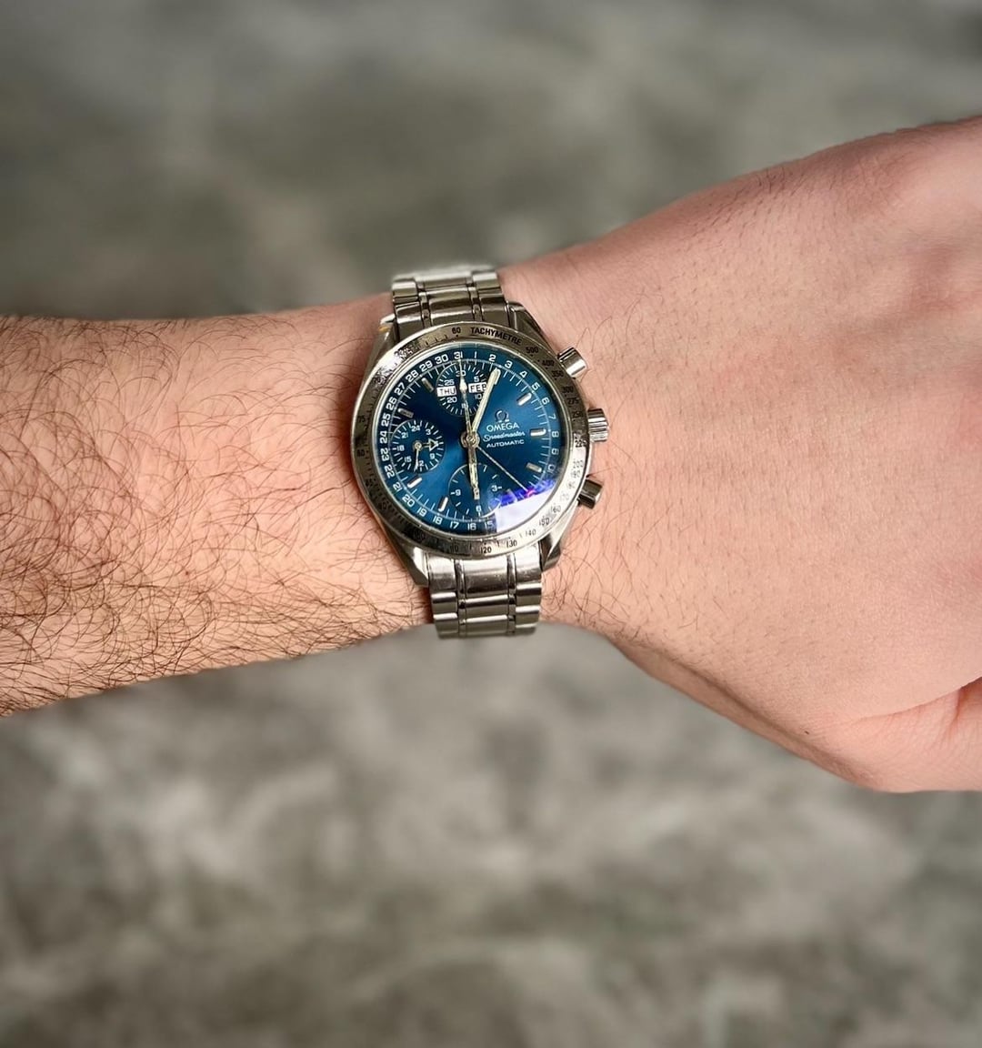 Up for sale today is a beautiful blue 0mega Speed master “Triple Date”. It comes double boxed with papers. It’s in overall very good condition for its age with some normal wear on the case, bezel, and bracelet. Some oxidation on the hands as well. Please refer to the pictures. The nickname comes from the 3 date complication this watch has, showing the day, date and month. The day and the month are shown in the upper center and the date is shown by the half moon hand that goes around the dial. It’s one of my favorite reduced versions of the speed master. Timestamp: [Here](https://imgur.com/a/VBoPb5x) Reference: 3523.80 Size: 39mm Movement: Cal 1150 Accessories: Box & Papers **PRICE: $1950 + shipping** IG: [old_country_timepieces](https://www.instagram.com/old_country_timepieces?igsh=amxmZzNoZnQ3bTh5&utm_source=qr) FB: Old Country Timepieces Method of payment accepted: Zelle/Wire I’m located in Cleveland, OH. Local face to face deals are possible. I ship fully insured nationwide. International shipping is possible upon agreement on extra fees. Please check out my other watches for sale on my profile. Plenty of references. Don’t see what you’re looking for? Please message me as sourcing might be possible. Thank you!