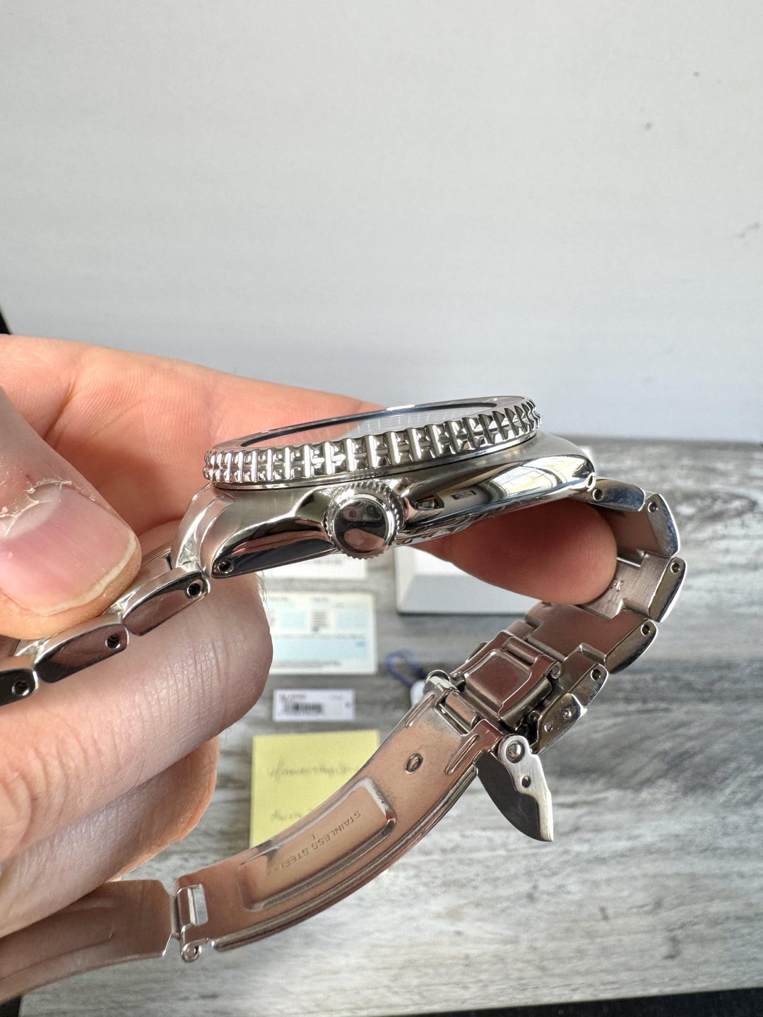 For sale is my Seiko Turtle SRPE99 purchased new by me from a local AD on 5/18/2023. Only selling to fund a SPB143. Price: $230 shipped Watch: Is in great shape, I would rate it conservatively at a 9/10. There are a few tiny marks on the non-crown side, and can be found circled in red in the photos. The glass appears to be perfect, and the crown works without issue. Overall the watch itself is in great shape. Bracelet: OEM bracelet that is well used with a lot of desk diver marks. The bracelet functions perfectly, just scratched up from desk. Currently sized for a ~7” wrist. Box/Papers: comes with what is shown in photos, which is what I received from AD. Shipping: Will be shipped via USPS Priority to cont US (48 states) only. Payment: PayPal G&S only Price: $230 includes shipping and PayPal fees. This is first sale by me here on Reddit, but I’m happy to FaceTime to show watch and send additional photos.