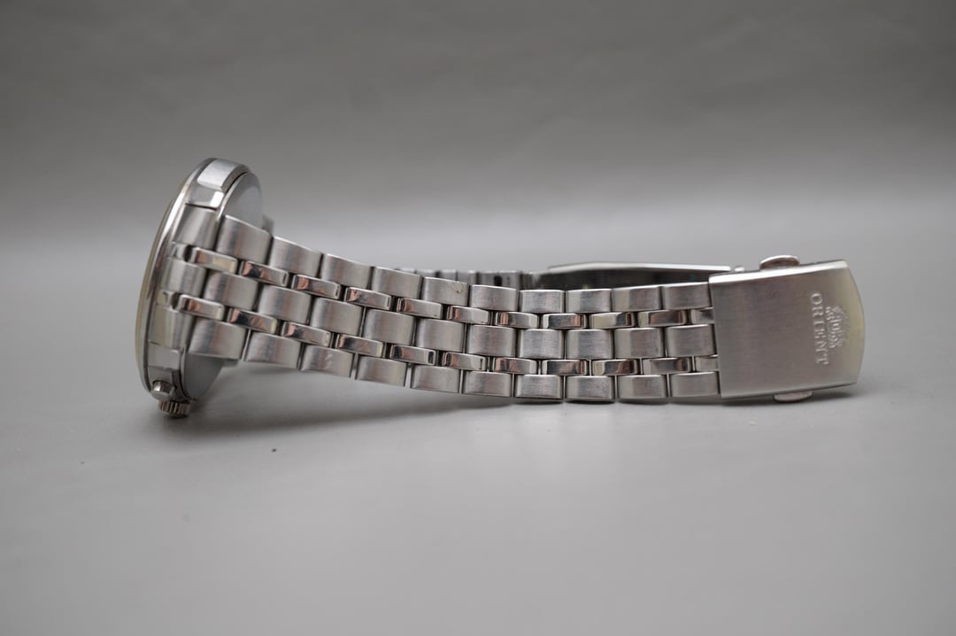 Timestamp: https://imgur.com/a/YDNrpp2 For sale is a Orient TT0P-C3-B Black Silver Dial Quartz Chronograph Watch Movement: Quartz Condition: Used Strap: Original bracelet with full links Box: Original Warranty card: None 2014-9-30 Manual: Yes READ: Chronograph starts, stops, and resets. Wear on crystal, seconds hand subdial at 9 does not work. Approximate measurements: Case diameter: 42mm (excluding crown) Lug width: 22mm Lug to lug: 48mm Thickness: 9.2mm Asking $75 USD including tracked shipping to US. UPS Expedited/Express, Canadian, and global shipping available at an additional cost. Payment via Wise, crypto, wire, e-Transfer (for Canadians), or PayPal Invoice (+3.9%). No trades and please comment before messaging.