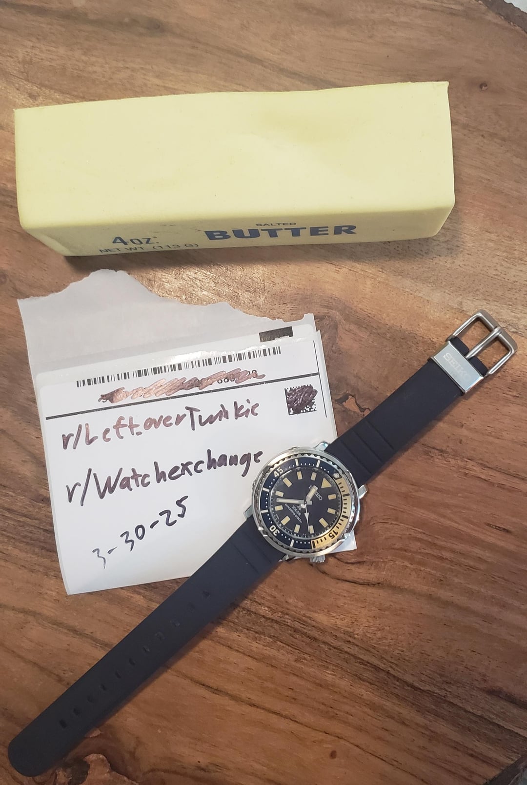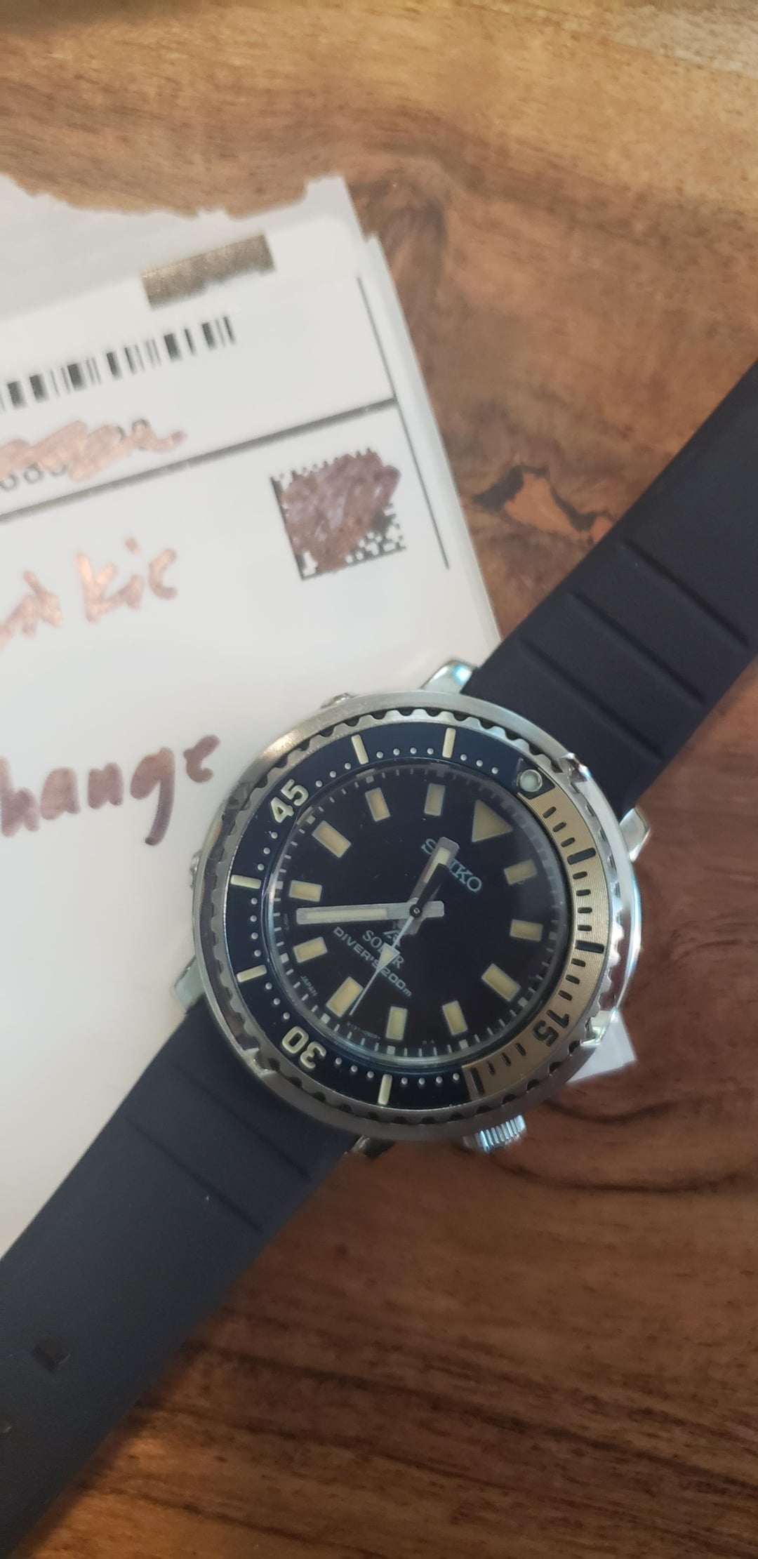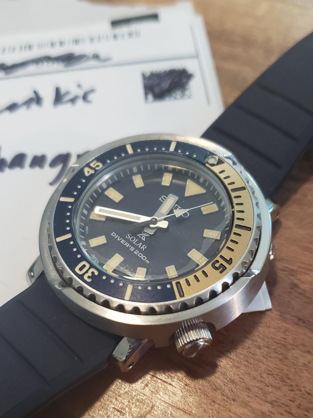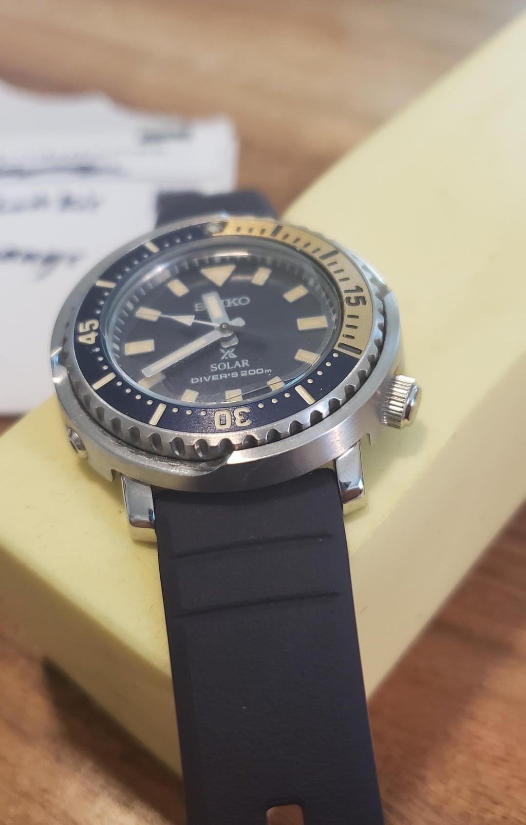 Hiya what you see what you get, if the post is up then it is for sale. ***please comment, so I can go in order regarding who came first*** ***please comment on this post so I can know as well as other redditors have a paper trial that you as a buyer have a solid reputation*** ***ALWAYS ASK FOR NEW TIME STAMPS*** ***ASK FOR A PHOTO WITH MY LAPTOP or HONDA CROSSTOUR AS A BACKGROUND BEFORE YOU SEND CASH OVER*** sorry for the yelling in 'all caps' Hiya ma fellow watch enthusiasts I got a discount Tuna for the Seiko enthusiasts. I am selling it cause it is too good to be modded also solar movements are bit passed my 'back yard' mechanic skills. Anyways check out the stats: - missing warranty card - has screen protector - OEM case and strap *no mods to it* *never opened it* *enjoy the discount* *your watch collection could use a new friend* Thank ya for looking at my post. - open to offers - paypal please - conus - free shipping (international pays for shipping) - kevo