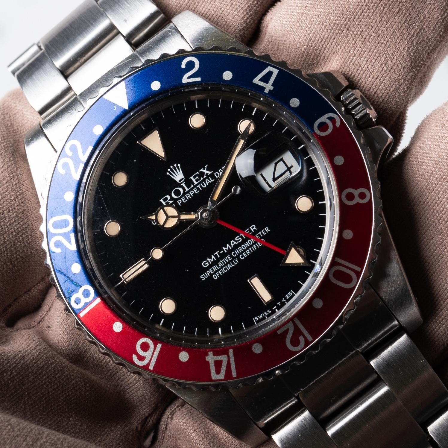 | 1984 ROLEX S/S 16750 GMT-MASTER II SPIDER DIAL PEPSI BEZEL AUTOMATIC CHRONOMETER productltd (4523) |