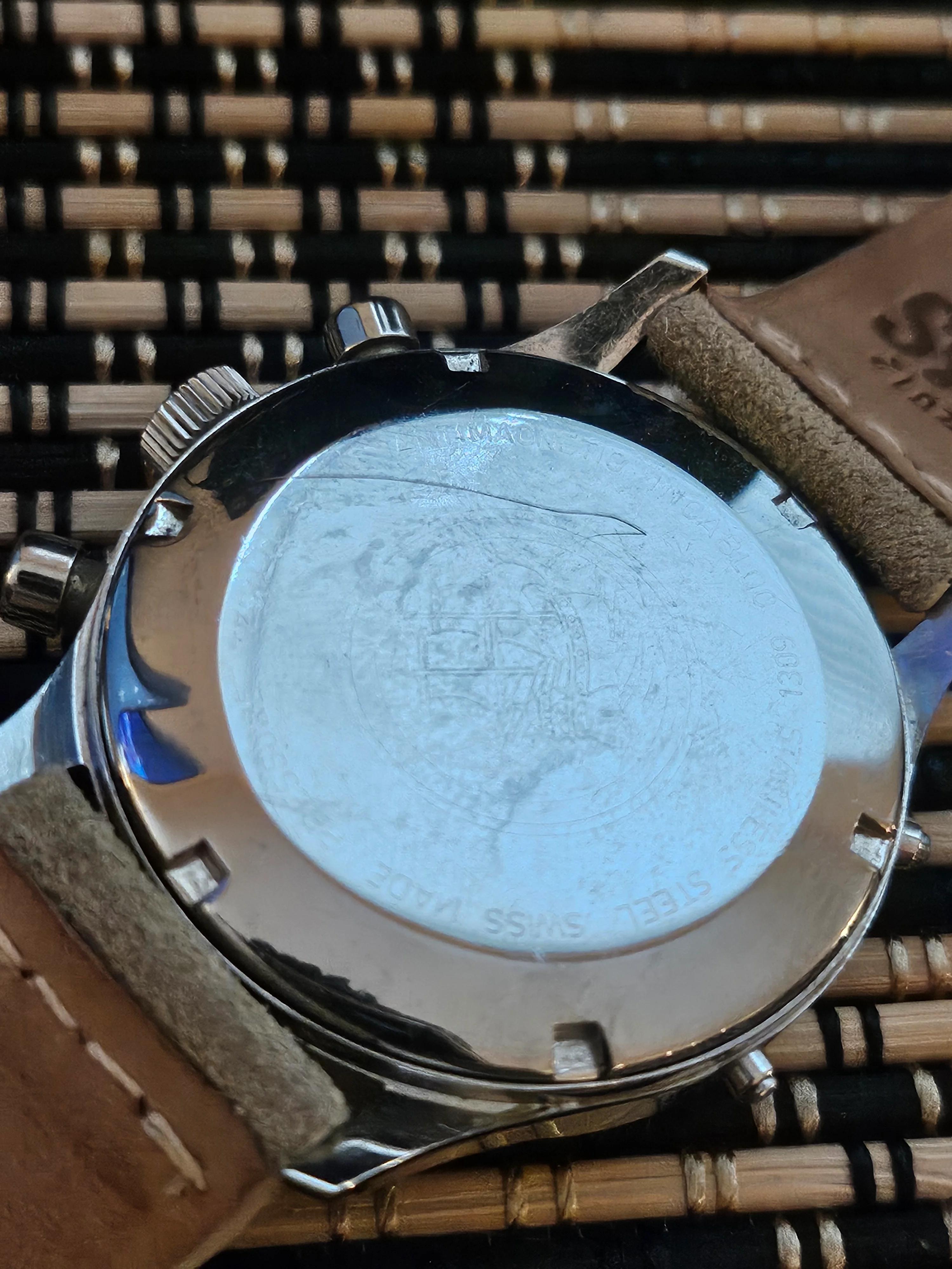 Condition: Watch is fully functioning as it should (dates flipping over, actuation of chronograph, reset, actuation of manual knobs for date adjustment). Did not service it in my ownership, unknown service history beforehand. Movement is very clean.
