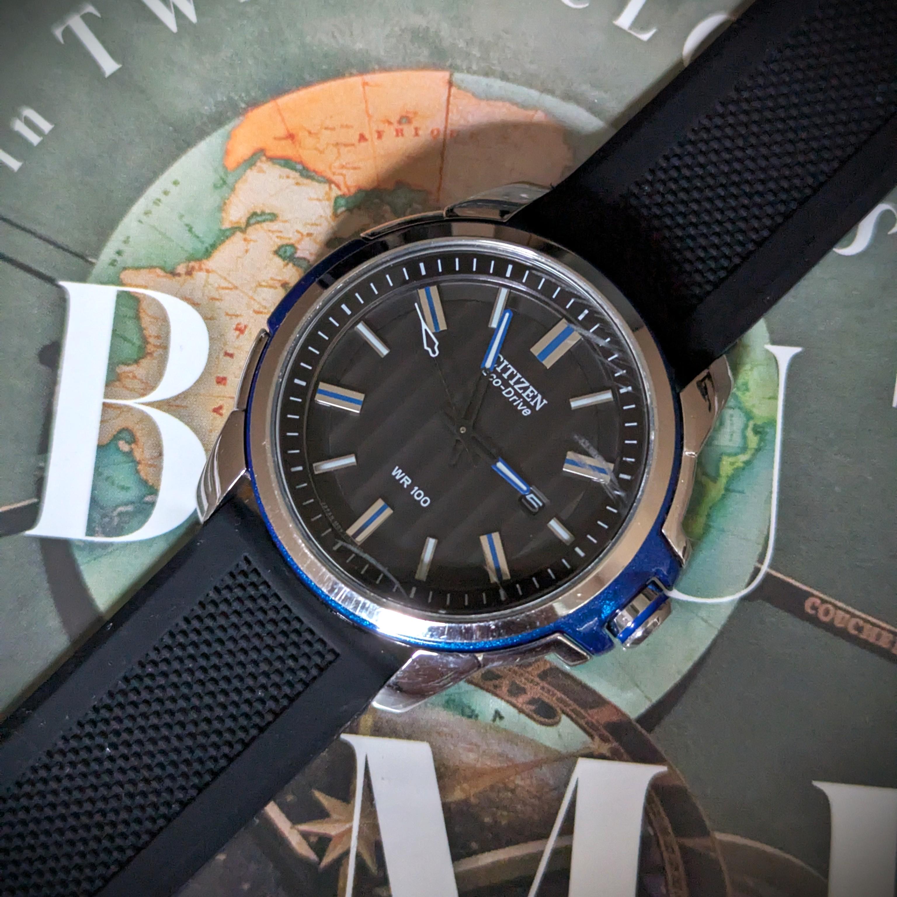 Hello everyone! Up for sale is my well loved Citizen Weekender AR 2.0 Eco-Drive (ref. # AW1151-04E) in great functional condition. Cosmetically, the watch shows some scratches on the mineral crystal, but they don’t affect the readability of the dial or hands. Watch comes as pictured, with the rubber strap only. **Specs:** * Movement: J810 Eco-Drive (Ring Solar) * Case Width (mm): 44 * Lug Width (mm): 23 * Dial: Black, Blue Accents, Luminous Hands and Markers * Mineral Crystal * Water-Resistance: 100m * More info: https://www.citizenwatch.com/us/en/product/AW1151-04E.html *** I am in the US (east coast) and prefer Zelle, wire, or Paypal for payment. **Asking price is $50 or best offer.** I have sold, purchased, and traded numerous watches here (over 215 transactions) and also have [strong feedback references on /r/WatchExchangeFeedback](https://www.reddit.com/r/WatchExchangeFeedback/search?q=Scorpio_Rex&sort=new&restrict_sr=on&t=all) so deal with confidence! *** **Photos**: https://imgur.com/a/von2Unp **Timestamp**: https://imgur.com/XWHY53p *** Please let me know if you have any questions. Thanks!
