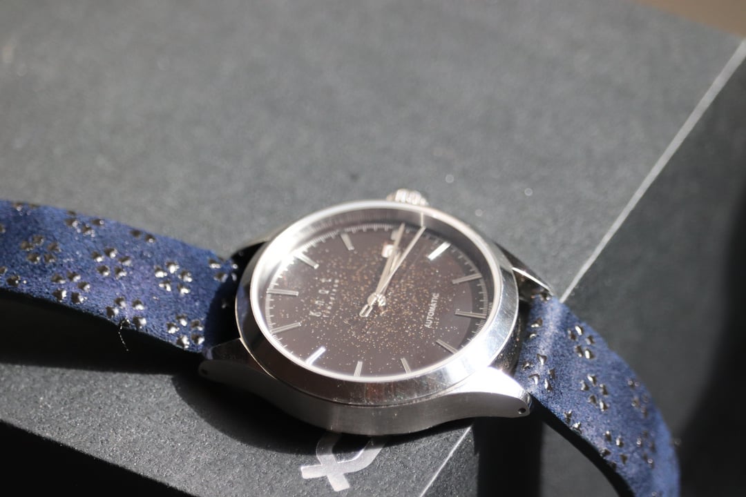 I’m listing for sale a rare Maker’s Watch Knot watch that has an urushi-painted dial with gold dust sprinkled on top. Images: [https://imgur.com/a/makers-watch-knot-black-urushi-dial-qDqgP7C](https://imgur.com/a/makers-watch-knot-black-urushi-dial-qDqgP7C) (with timestamp) I bought this watch in 2023 in Tokyo at the head Knot store. The watch comes with a stainless steel strap, but I usually wear it with the blue deerskin strap with black urushi listed. The other two straps are a black leather strap and a crimson leather strap. The watch is automatic powered by a cal.9015 MIYOTA and surprisingly lightweight. Diameter: 38mm Price: $650 (plus shipping). Payment via Zelle, wire, F&F. If you'd like, can do G&S if you are OK with the fee. No trades please!
