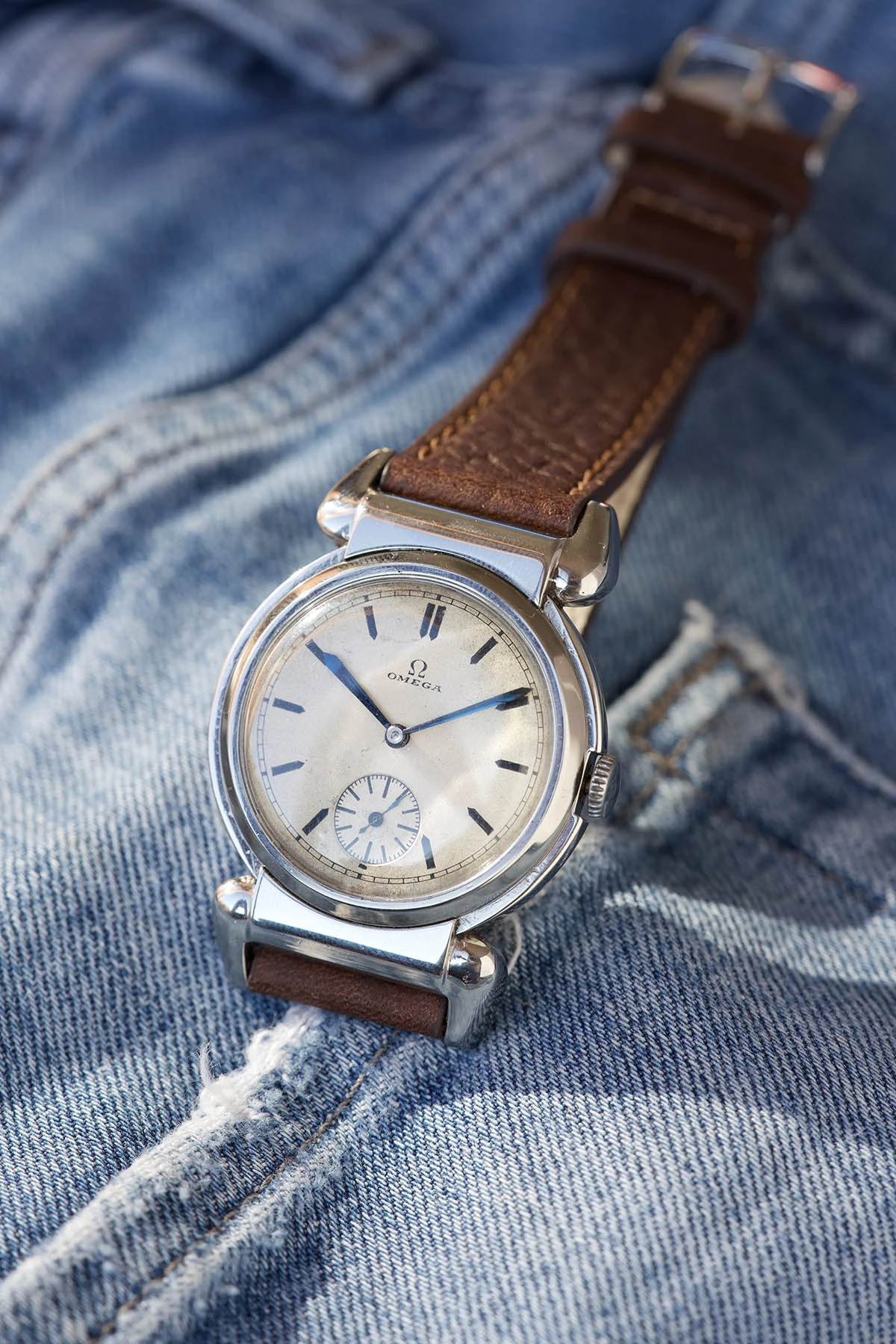 This specific watch, which I’m pleased to offer to the forum friends, features an extraordinarily beautiful dial: white, with an “eggshell” patina that takes on a slightly creamy hue under the right lighting. The finish is “grené,” a rare and delicate texture that is harder to find than the classic smooth dials (we often see it on Rolex watches from the same era). The layout is clean and minimalist, yet full of character. The curved logo is period-correct. The blued sword hands add a strong personality to the piece, which in my opinion is full of charm.