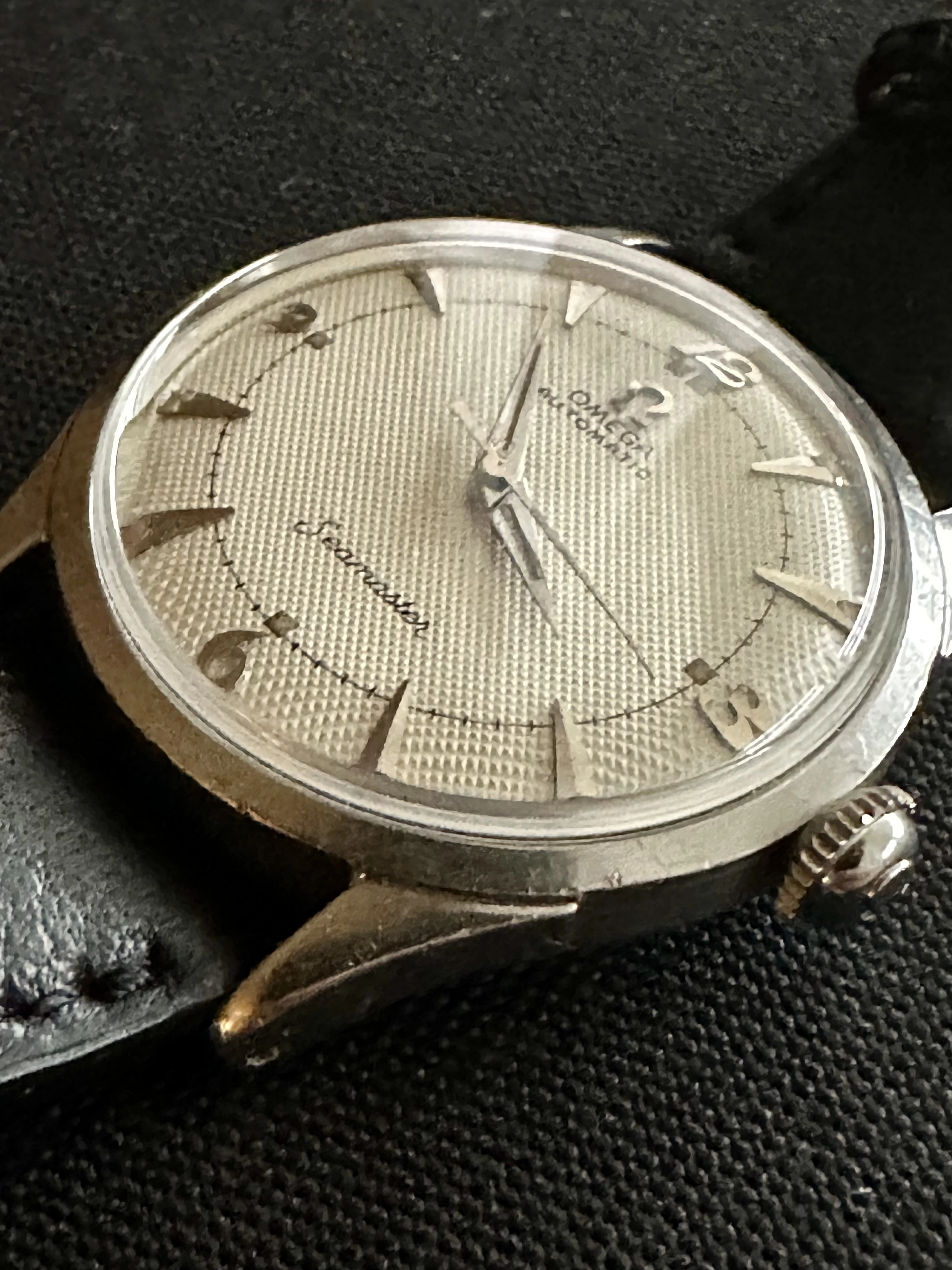 Good day all. Up for sale is something special - a 1952 Seamaster with a flawless honeycomb dial, perfect railroad track, silver Breguet numerals at 3, 6, 9 and 12, silver shark markers, Dauphine hands, and gorgeous radium lume. The case appears to be unpolished, with drilled lugs, and the correct Omega crown. You want more? Ok, how about this: the 1952 caliber 354 bumper was completely serviced from my watchmaker on 9/25/2023. All worn parts were replaced and the service paperwork are included and the tests checked. The five positions for tested show an average for +6 SPD. It's a winner.The Details