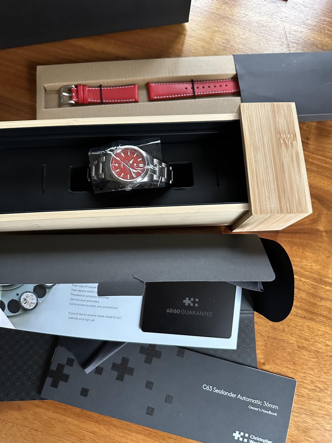 9 mesi fa | [WTS] Christopher Ward Limited Edition C63 Sealander in Acer Red Full Kit | $875 | |